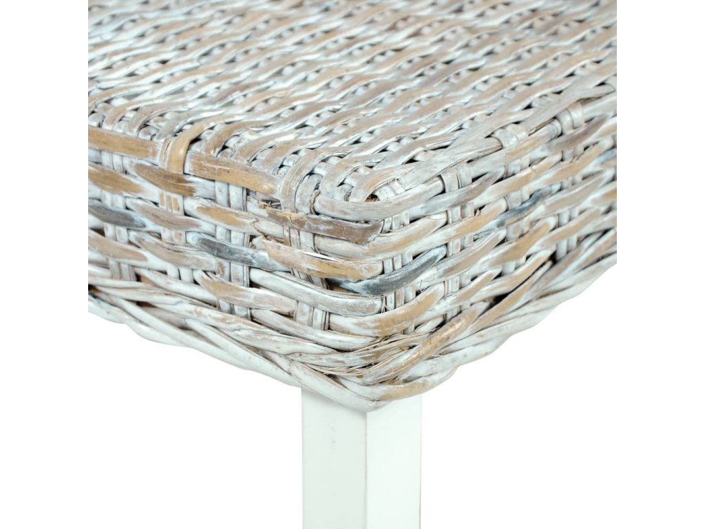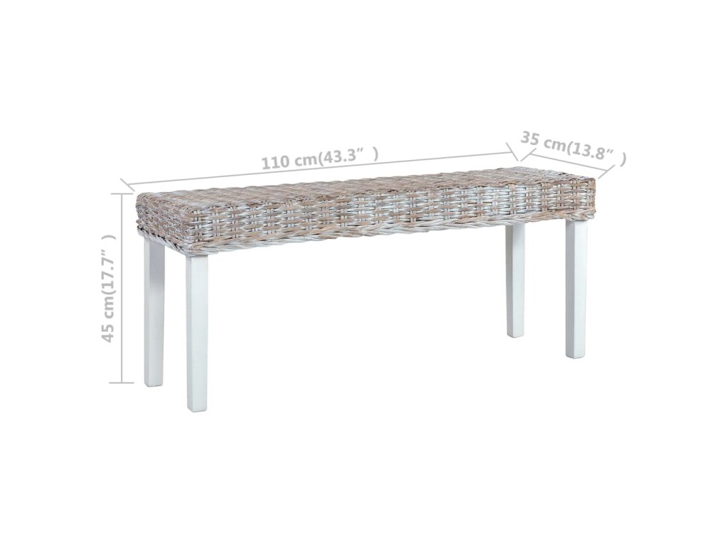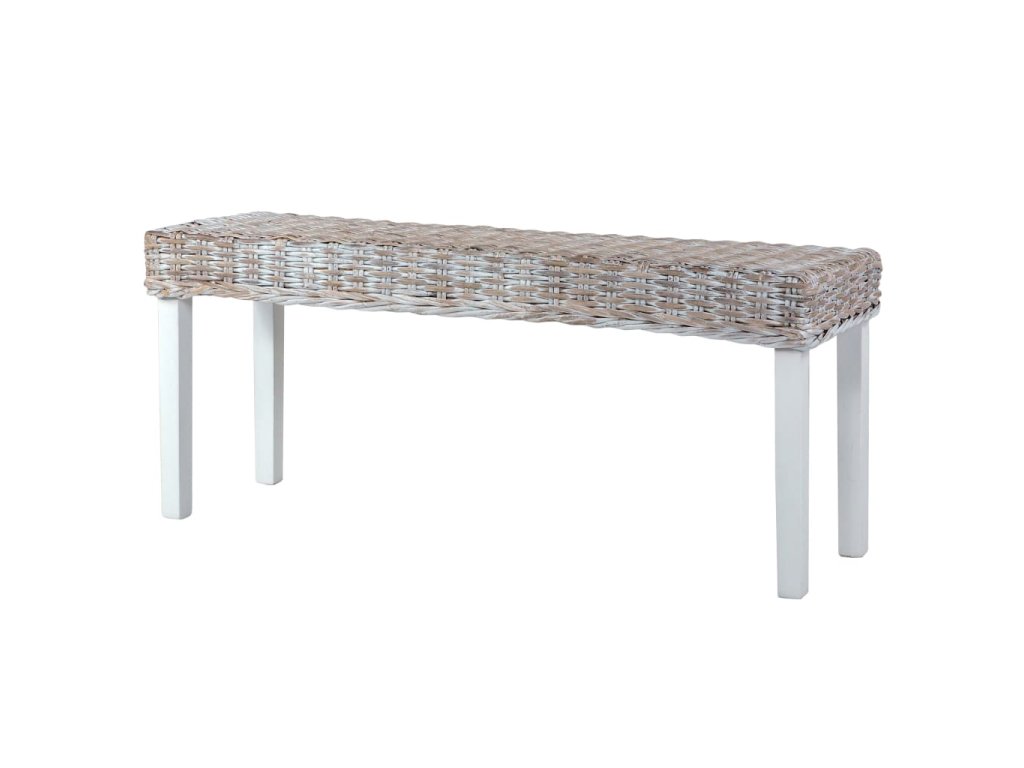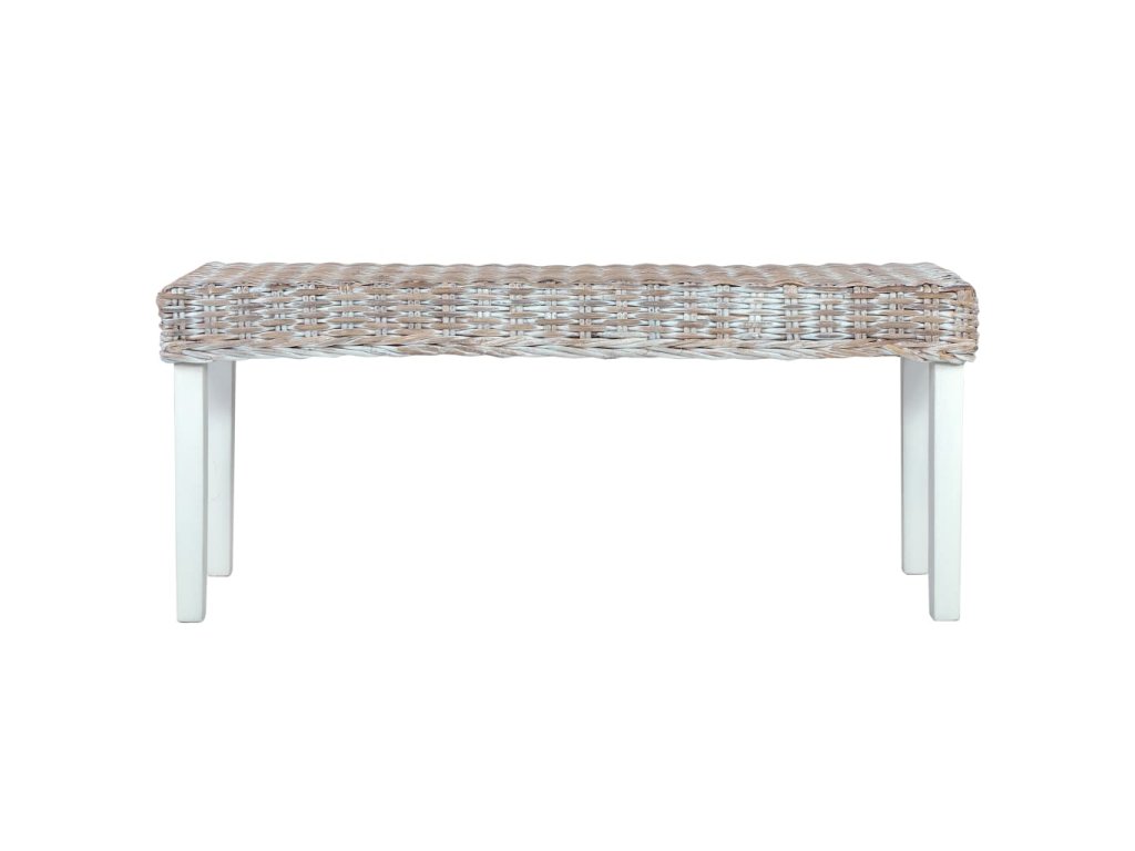 Lavice 110 cm bílý přírodní kubu ratan a masivní mahagon 285788