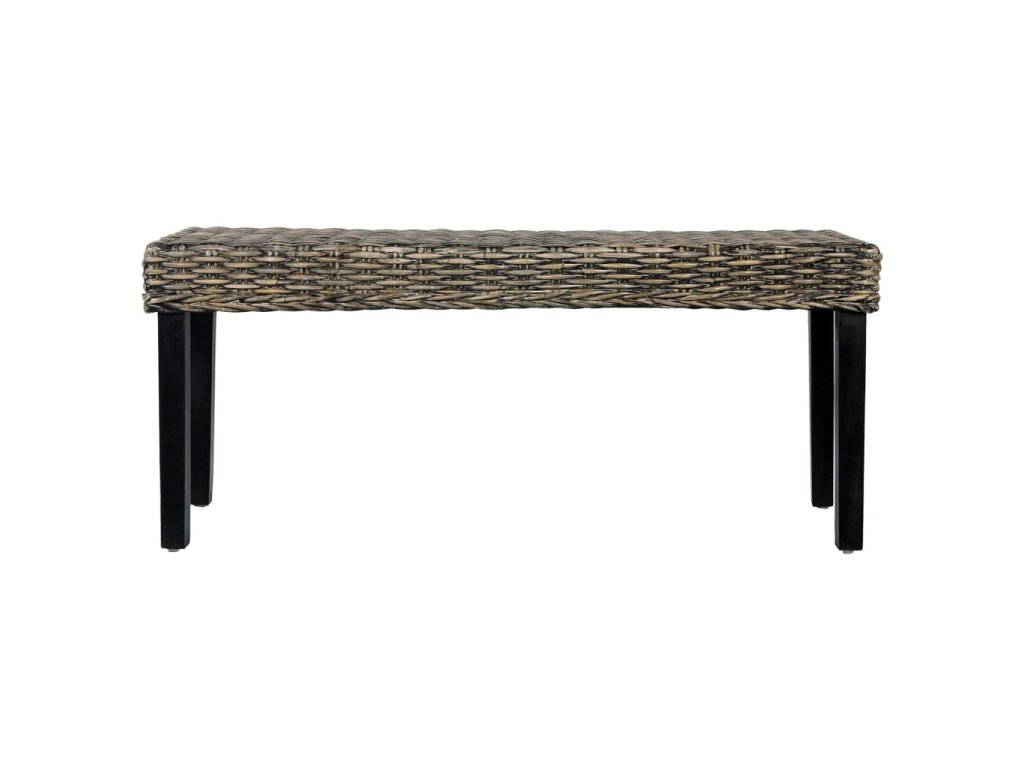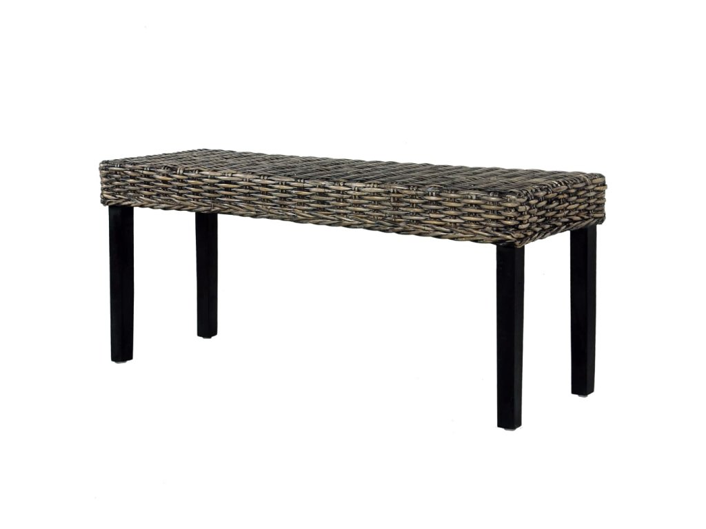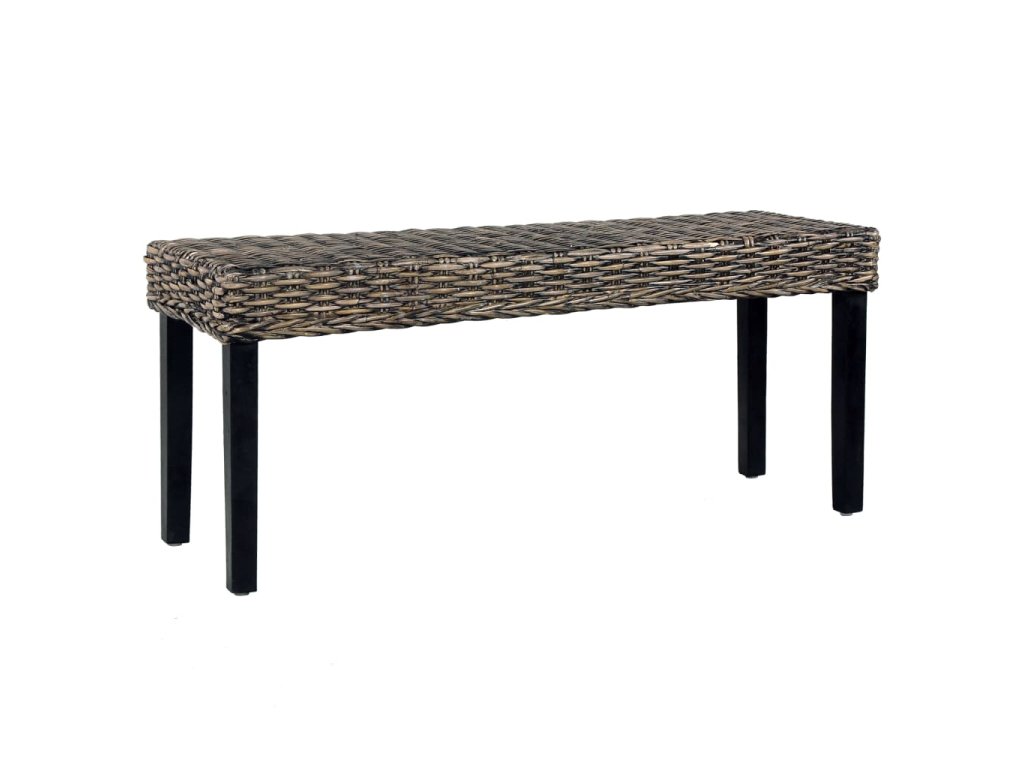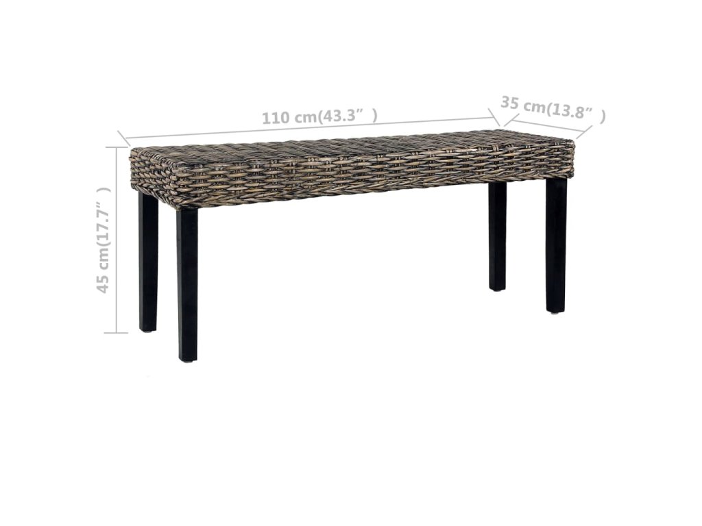 Lavice 110 cm černá přírodní kubu ratan a masivní mahagon 285790
