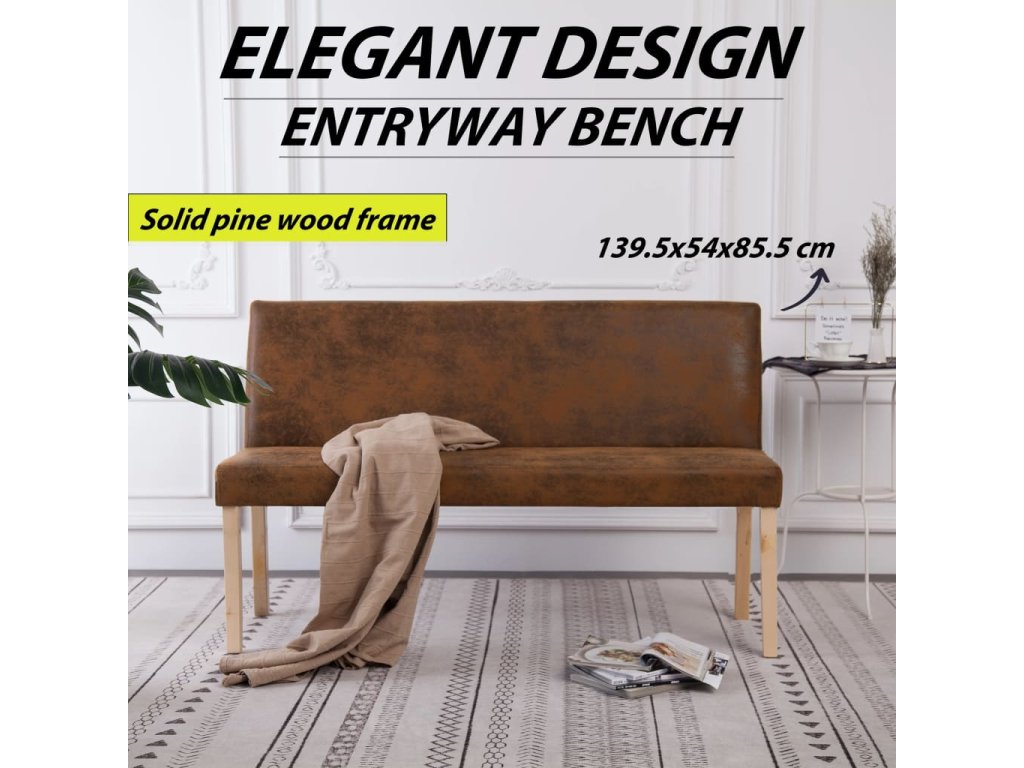 Lavice 139,5 cm hnědá umělá semišová kůže 281333