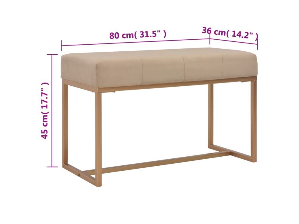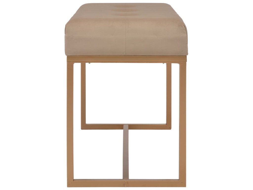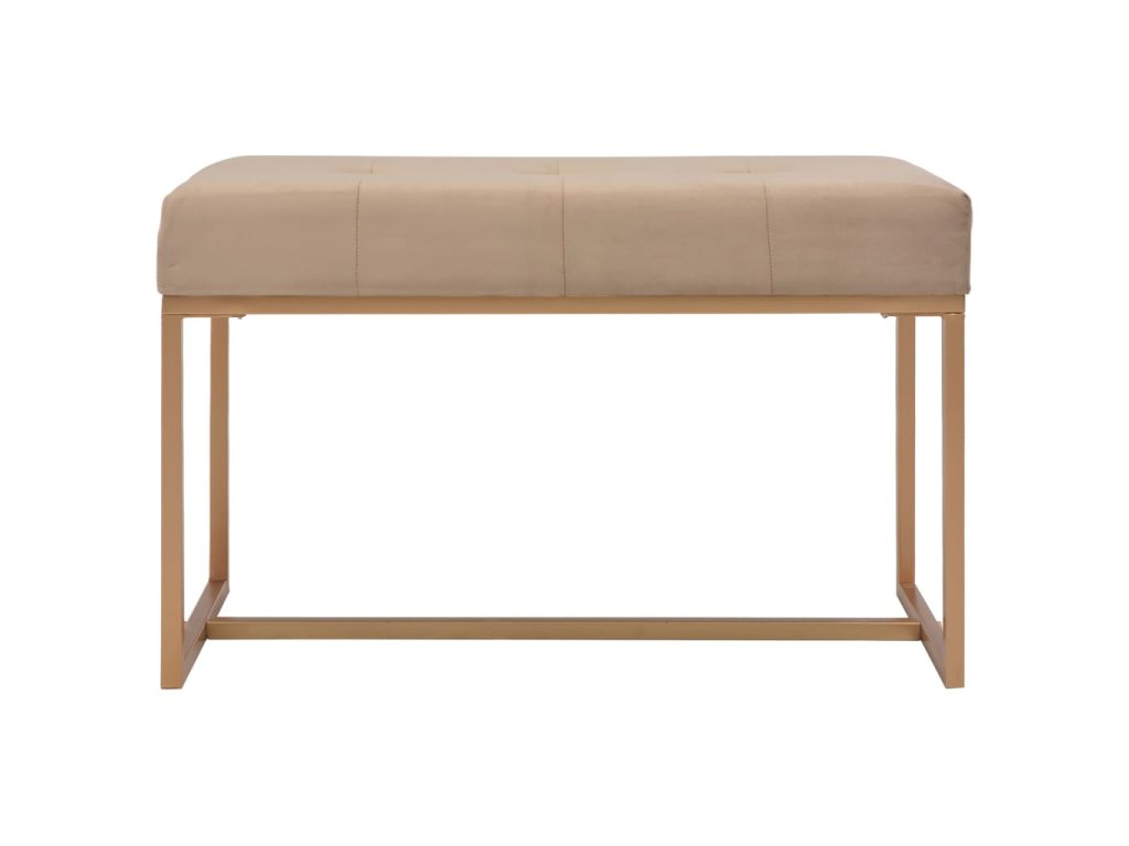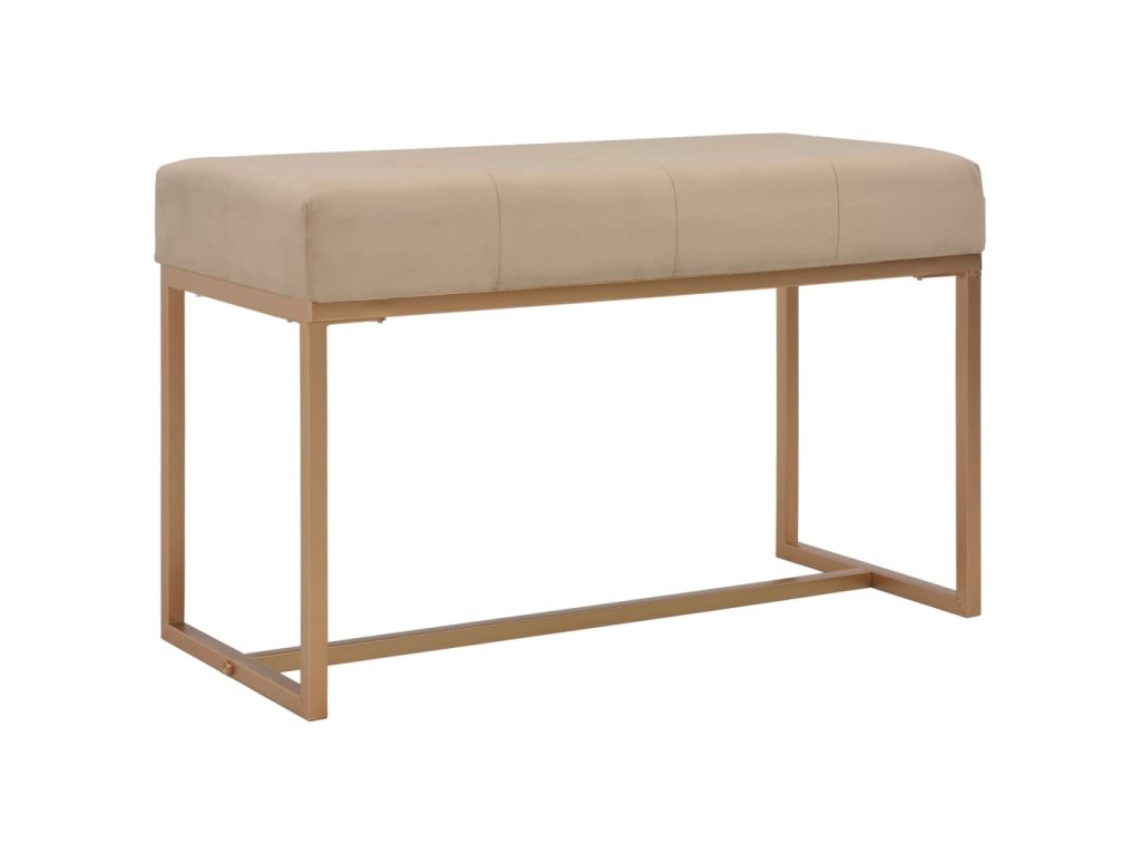 Béžové sametové čalounění je hebké na dotek a nesmírně pohodlné a svou barevností prozáří váš byt. Nohy z práškováním ošetřeného železa lavici dodávají na stabilitě a odolnosti. Lavička elegantním způsobem ozdobí vaši domácnost a stane se neodmyslitelnou součástí vašeho pokoje.