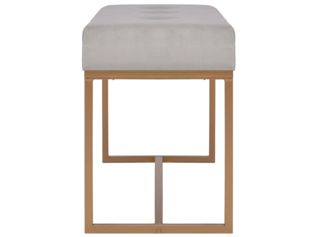 Šedé sametové čalounění je hebké na dotek a nesmírně pohodlné a svou barevností prozáří váš byt. Nohy z práškováním ošetřeného železa lavici dodávají na stabilitě a odolnosti. Lavička elegantním způsobem ozdobí vaši domácnost a stane se neodmyslitelnou součástí vašeho pokoje.
