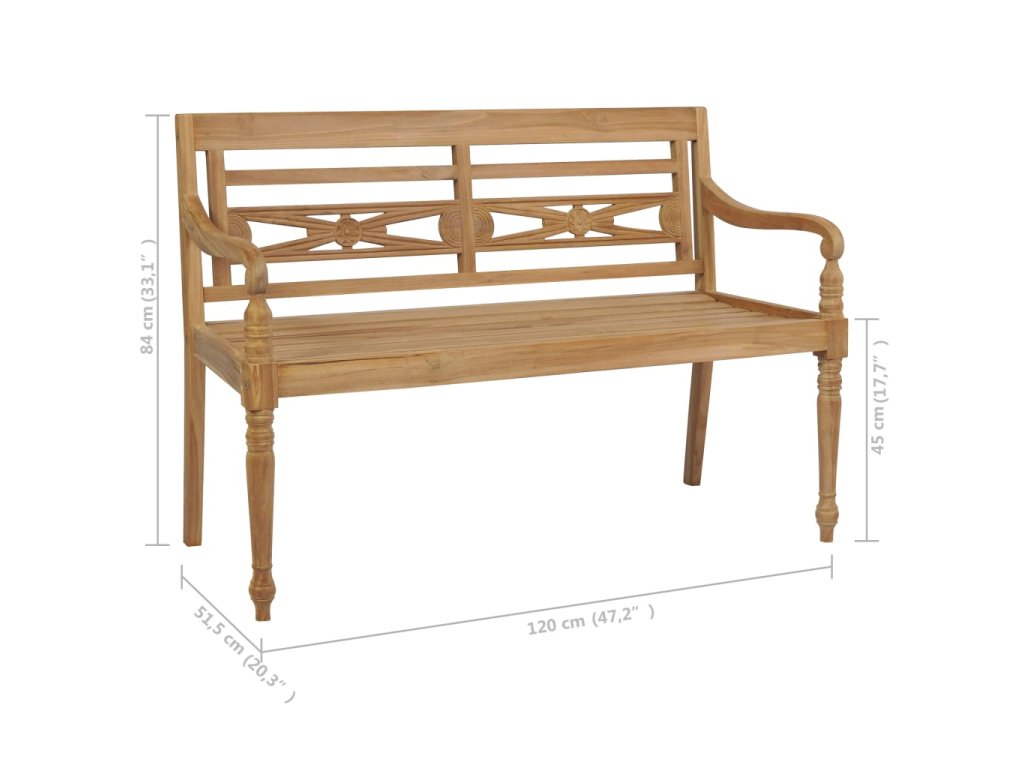 Lavice Batavia krémová poduška 120 cm masivní teakové dřevo 3062156