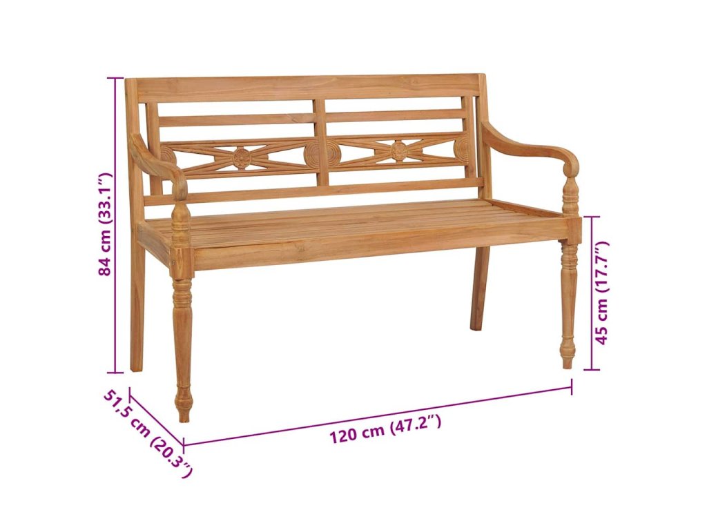 - Rozměry lavice: 120 x 51,5 x 84 cm (Š x H x V)