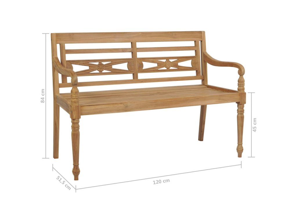 Lavice Batavia s modrou poduškou 120 cm masivní teakové dřevo 3062158