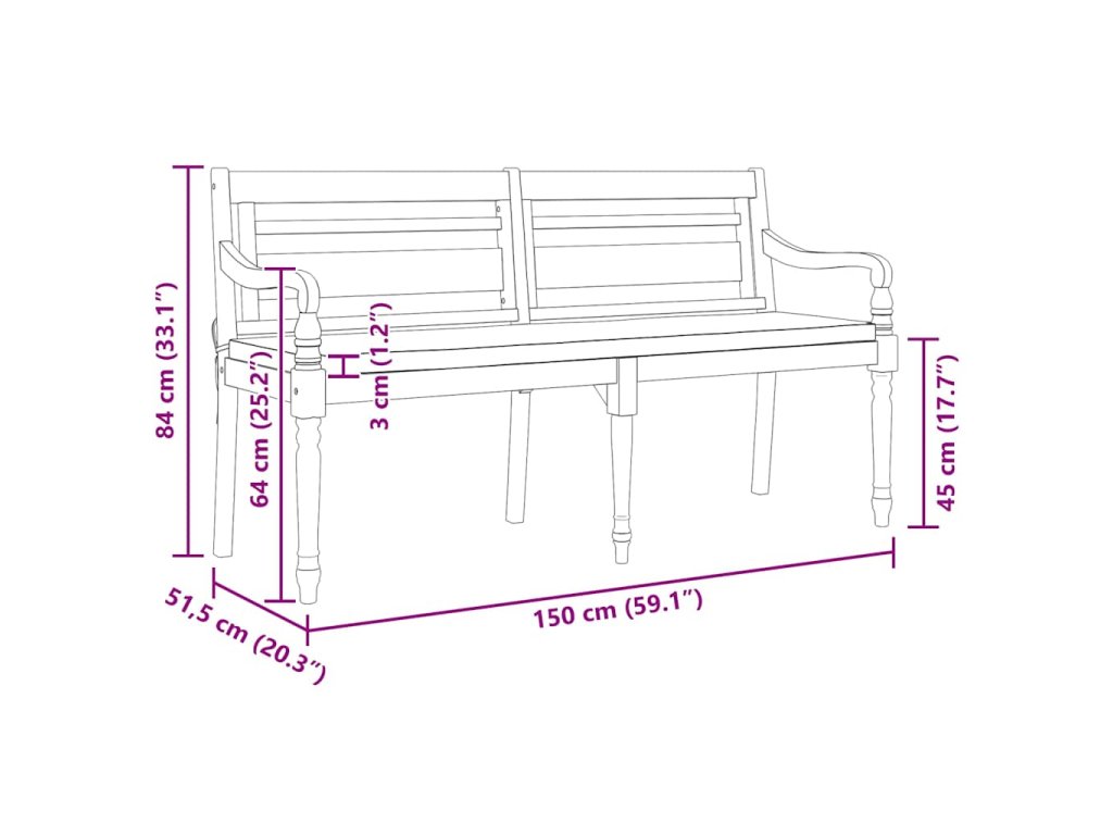 Lavice Batavia s poduškou 150 cm masivní teakové dřevo 319148