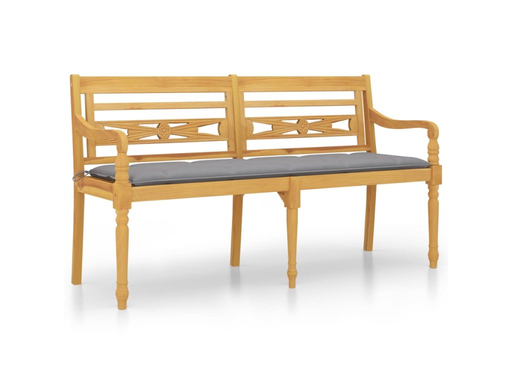 Lavice Batavia s šedou poduškou 150 cm masivní teakové dřevo 3100842