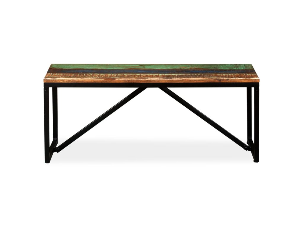 Tato lavice je vyrobená z masivního recyklovaného dřeva, které pochází z trámů, podlah a podpěrných nosníků ze starých zdemolovaných budov. Může se tedy skládat z různých typů dřeva, jako jsou borovice, teak, buk, dub, cedr, mangovník, akácie atd. To znamená, že recyklované dřevo má charakteristiky všech těchto různých druhů dřevin. Navíc je již zestárlé, zvětralé a vyschlé, takže se nesmršťuje ani neohýbá, a tudíž nevyžaduje povrchové úpravy.