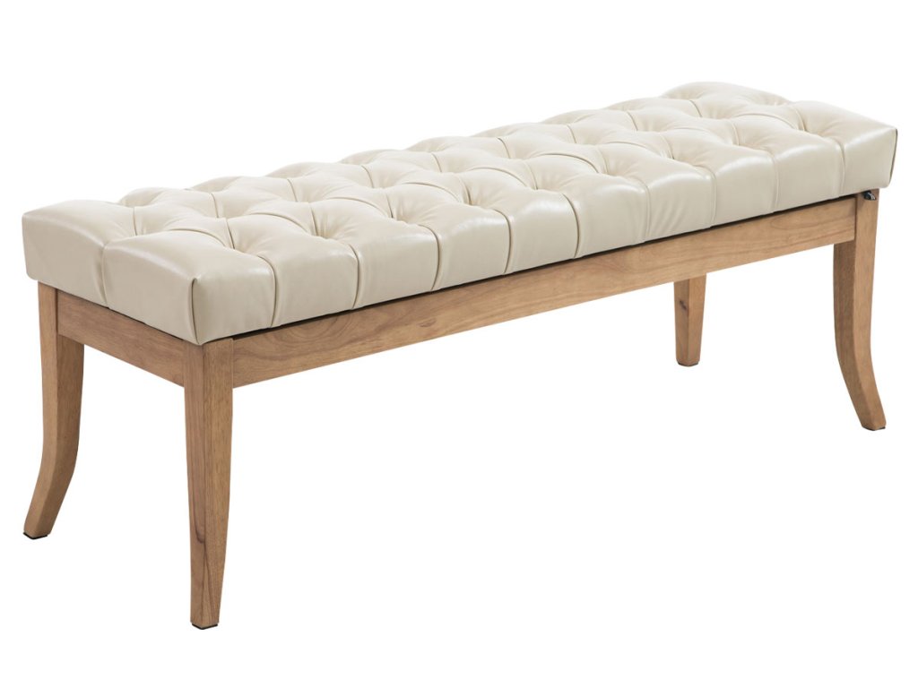 Sedací lavice Ramses z umělé kůže Více místa pro vaše návštěvy!Naše designová sedací lavice Ramses z umělé kůže zaujme jako pohodlně čalouněné sedadlo v elegantním designu Chesterfield! Důmyslně prošívaný potah z umělé kůže ze 100% polyuretanu dodává této lavici exkluzivní vzhled. Tento dekorativní kus nábytku se flexibilně a elegantně začlení do každé místnosti. Ať už v obývacím pokoji, předsíni nebo jídelně - jejímu individuálnímu designu se meze nekladou! Jemně zakřivené dřevěné nohy podtrhují elegantní vzhled a zajišťují potřebnou stabilitu. Kreativitu vyžaduje i barevná kombinace: vyberte si tu pravou z naší nabídky barev. Nabízené rozměry lze snadno kombinovat, protože lavice Ramses je k dispozici ve třech různých šířkách.