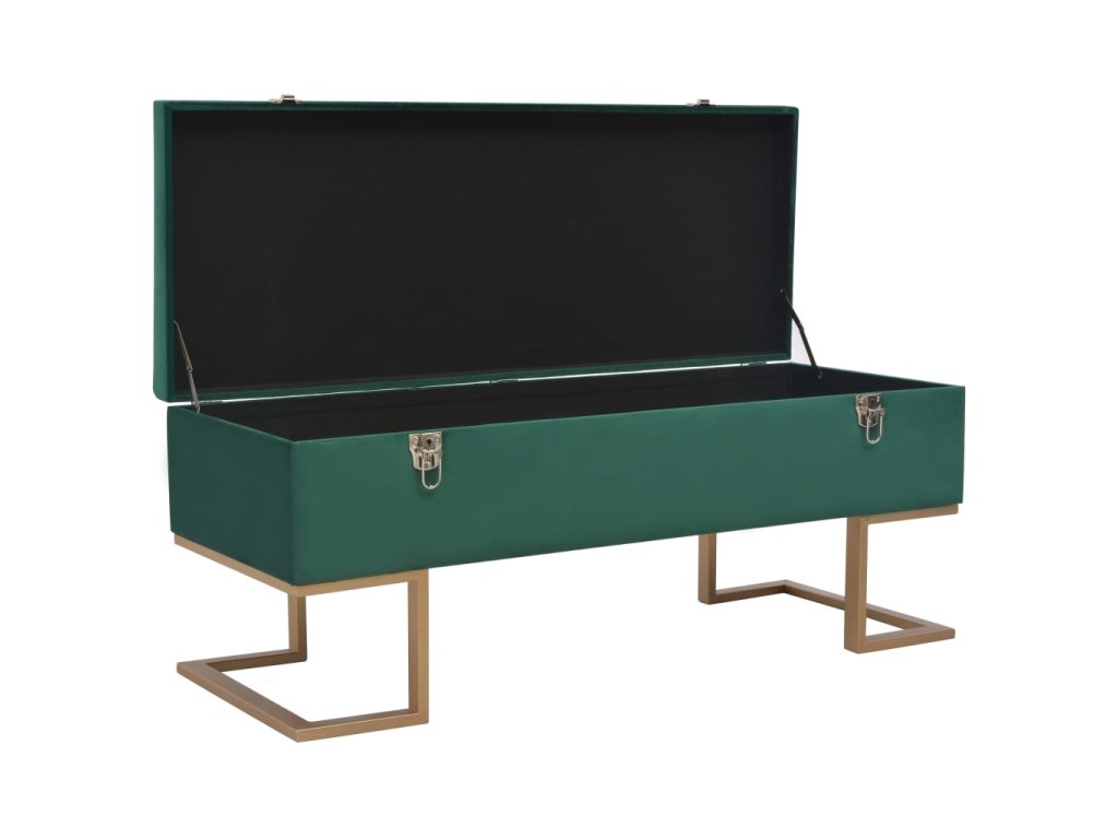 Sametové čalounění v zelené barvě je měkké na dotek a velmi pohodlné a svou barvou oživí každý interiér. Disponuje vestavěným úložným prostorem, který poskytuje dodatečné místo pro uschování nejrůznějších věcí. Nohy ze železa s práškovým nástřikem a zlatým nátěrem lavičce dodávají na stabilitě a životnosti. Naše lavice vnese do vašeho interiéru autentické kouzlo a stane se nedílnou součástí vašeho pokoje.
