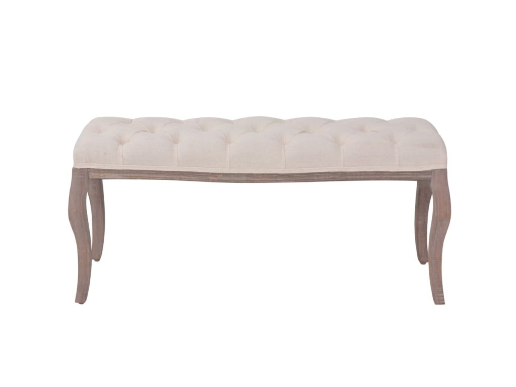 Tato půvabná, klasicky designovaná lavice s masivním dřevěným rámem a s elegantními esovitými nohami, tkz. kabrioly, vyzařuje rafinovaný šarm. Díky velmi kvalitnímu lněnému čalounění a vysokému polstrování je tato lavice nejen stylová, ale také pohodlná.