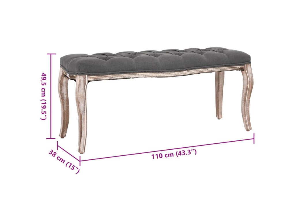 Lavice se lněným čalouněním 110 x 38 x 48 cm tmavě šedá 245360