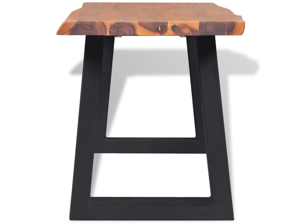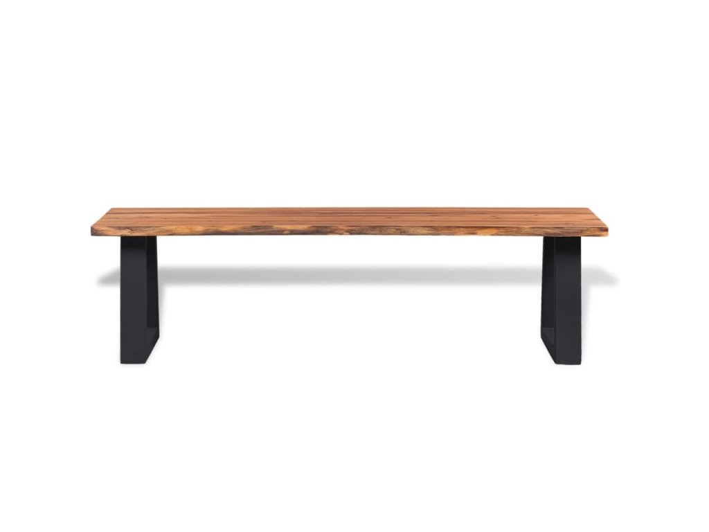 Lavice je velmi robustní a odolná. Její horní deska je vyrobena z masivního akáciového dřeva, které je velmi trvanlivé. Nepravidelné hrany dřeva kopírují přirozený tvar stromu a zvyšují půvab lavice. Jedinečné kovové, práškovým nástřikem opatřené nohy ve tvaru písmene U umocňují industriální vzhled lavice a zajišťují její mimořádnou stabilitu.