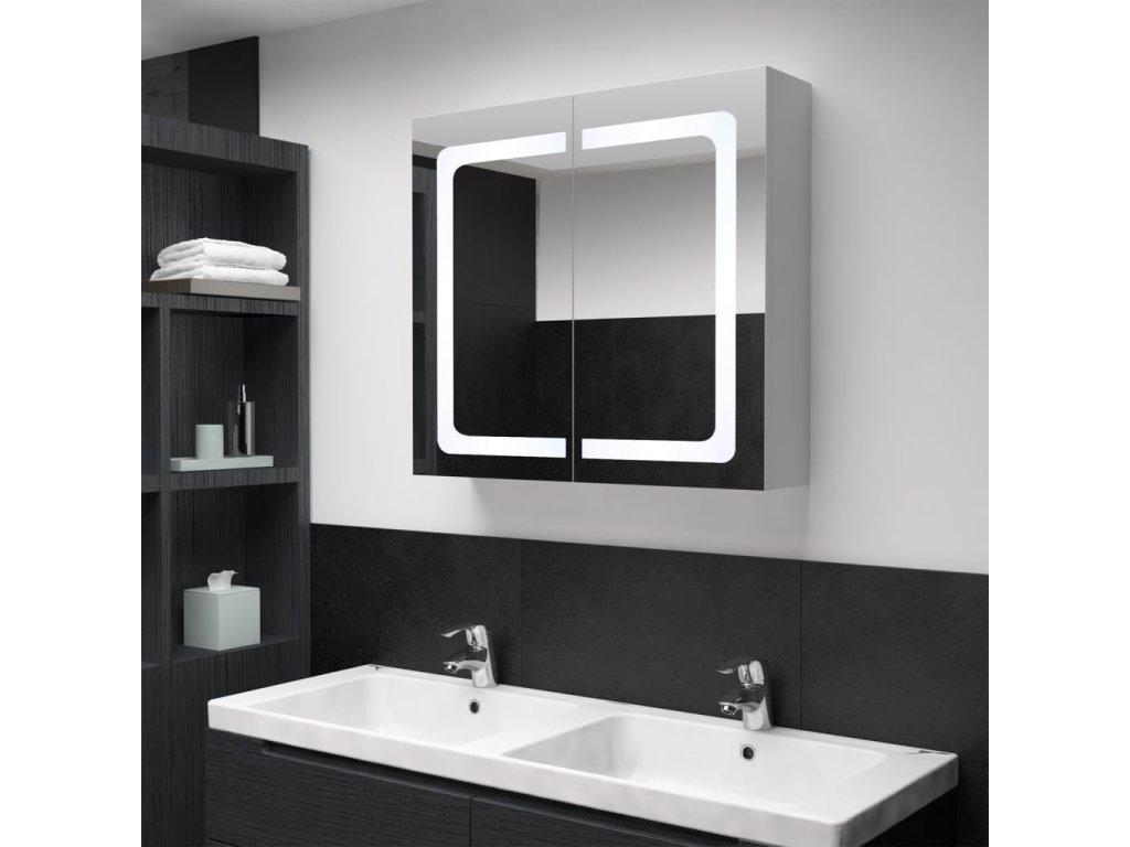 Skříňka je vyrobená z kvalitní MDF desky s melaminovou povrchovou úpravou, která zaručuje dlouholetou životnost. Energeticky úsporný LED pásek v horní části vám poskytne optimální osvětlení pro líčení, holení či péči o pokožku. Dokonale rozzáří celou místnost, vaši tvář i váš úsměv. Světlo můžete snadno zapnout či vypnout tlačítkem ve spodní části. Ve skříňce za dvoukřídlými dvířky najdete 3 poličky s dodatečným úložným prostorem. Zde si můžete uspořádat své nezbytné toaletní potřeby, jako jsou mýdla, šampony, zubní pasty atd. Tato stylová a funkční skříňka ozvláštní vskutku jedinečným způsobem vybavení vaší koupelny!