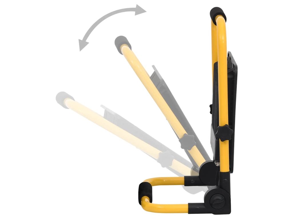 Pracovní světlo má hliníkové pouzdro a skleněný kryt, odvádí tedy dobře teplo a má nízkou hmotnost. Se světelným tokem 7 000 lm a úhlem vyzařování 120° zajišťuje dokonalé osvětlení. Reflektor navíc vyzařuje světlo o barevné teplotě 3 000 K, která zajišťuje optimální světelné podmínky v okolí vašeho domova. Světlo je vyrobeno se stabilním rámem z ocelových trubek s ergonomickou rukojetí, takže se snadno přenáší. Když se zrovna nepoužívá, dá se složit. Je energeticky úsporné a zároveň můžete těžit z dlouhé životnosti až 50 000 hodin.