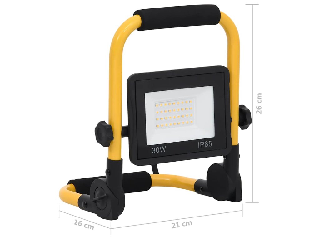 Pracovní světlo má hliníkové pouzdro a skleněný kryt, odvádí tedy dobře teplo a má nízkou hmotnost. Se světelným tokem 2 100 lm a úhlem vyzařování 120° zajišťuje dokonalé osvětlení. Reflektor navíc vyzařuje světlo o barevné teplotě 6 000 K, která zajišťuje optimální světelné podmínky v okolí vašeho domova. Světlo je vyrobeno se stabilním rámem z ocelových trubek s ergonomickou rukojetí, takže se snadno přenáší. Když se zrovna nepoužívá, dá se složit. Je energeticky úsporné a zároveň můžete těžit z dlouhé životnosti až 50 000 hodin.