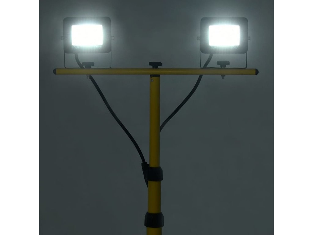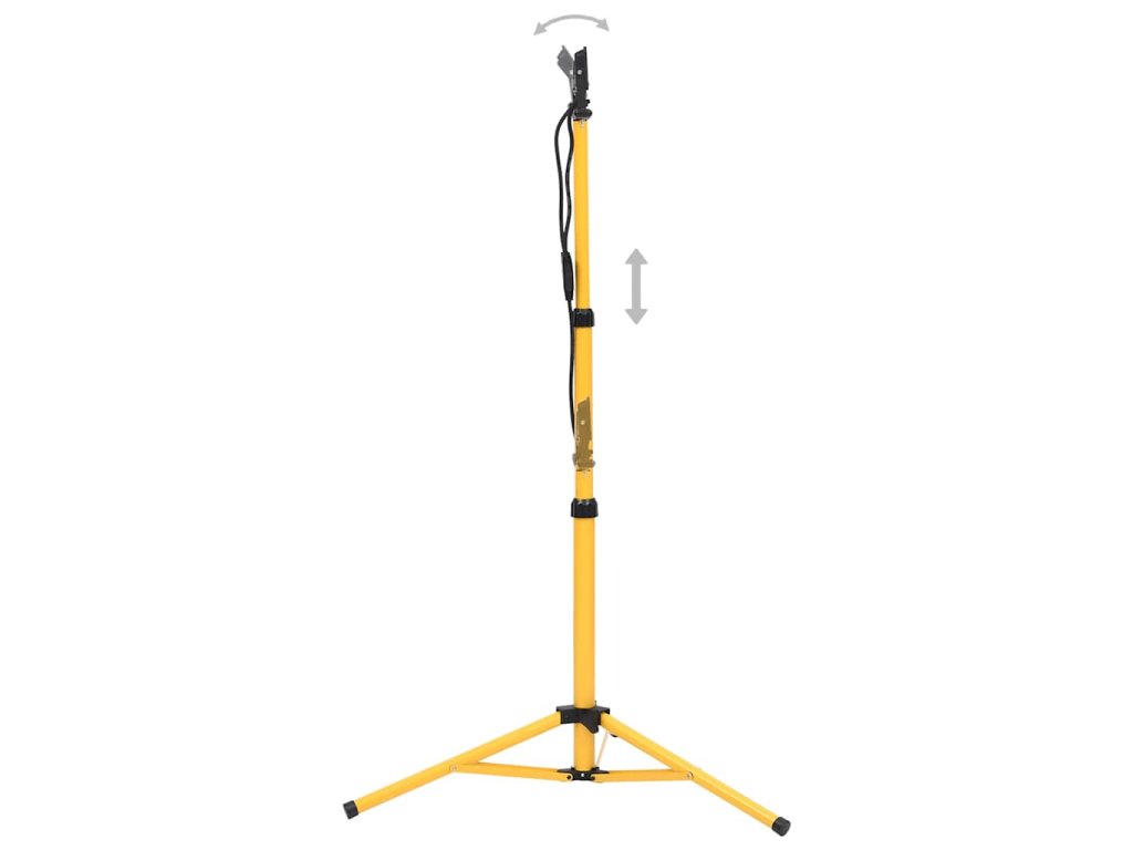 Pracovní světlo má hliníkové pouzdro a skleněný kryt, odvádí tedy dobře teplo a má nízkou hmotnost. Se světelným tokem 1 400 lm a úhlem vyzařování 120° zajišťuje dokonalé osvětlení. Reflektor navíc vyzařuje světlo o barevné teplotě 6 000 K, která zajišťuje optimální světelné podmínky v okolí vašeho domova. Pracovní světlo je podepřeno ocelovou trojnožkou, což mu dodává na robustnosti a stabilitě. Výšku si můžete nastavit podle vlastních preferencí. Vzhledem k pevně připojenému 3m napájecímu kabelu se zástrčkou je ideální lampu postavit do místnosti.