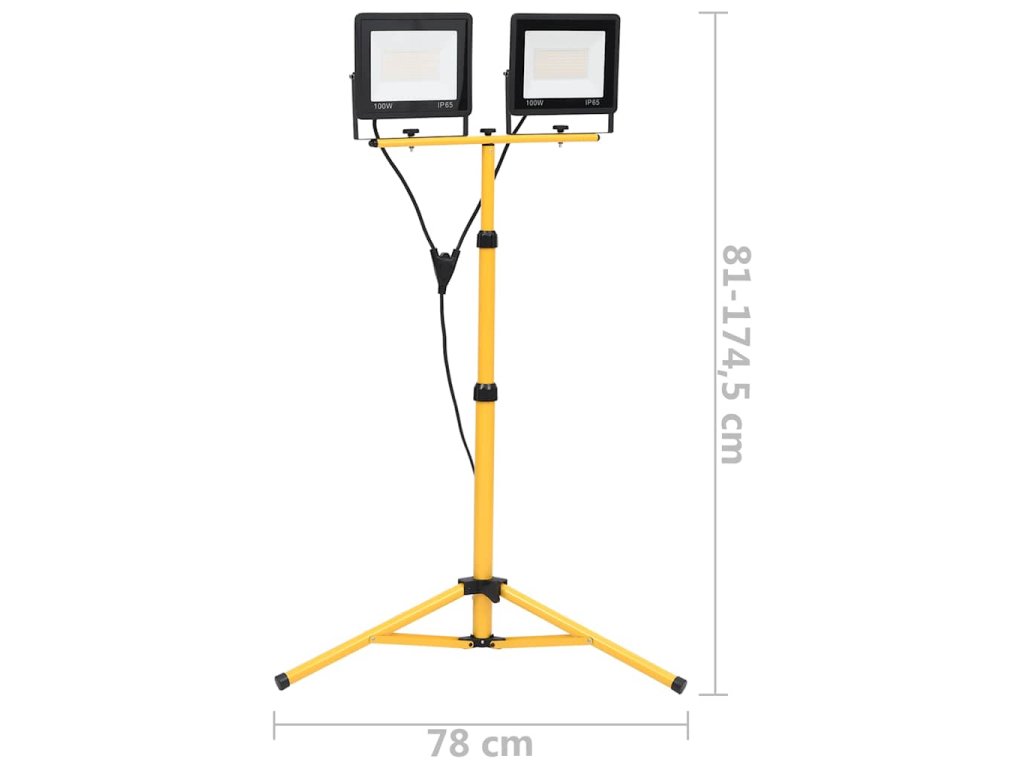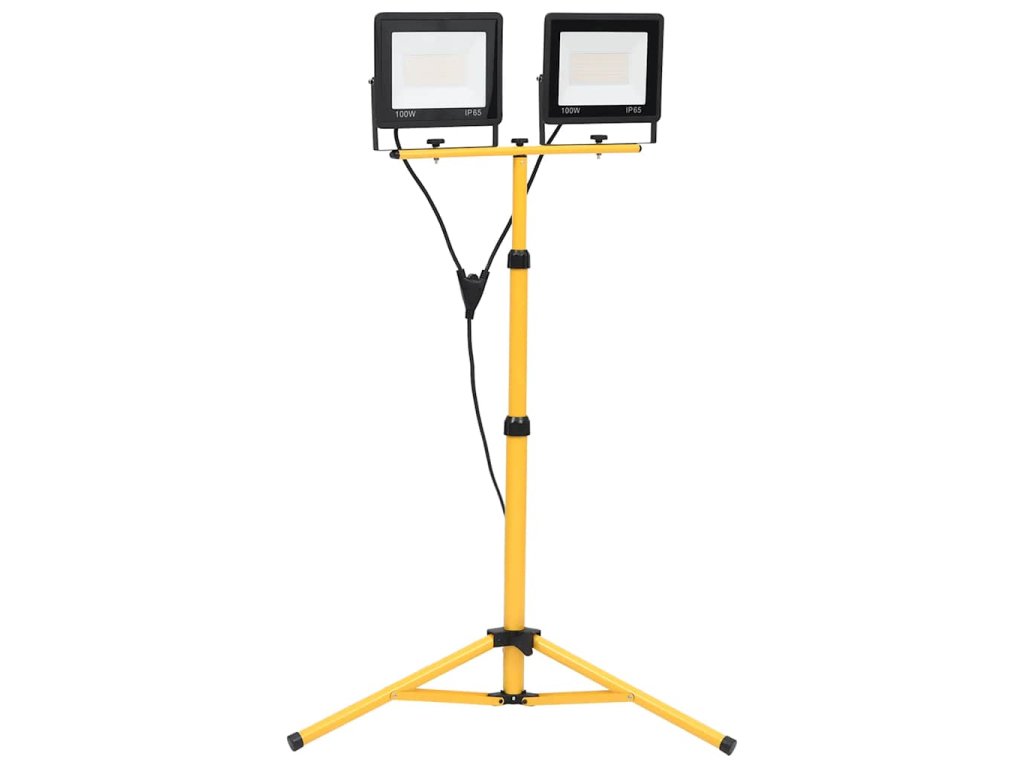 Pracovní světlo má hliníkové pouzdro a skleněný kryt, odvádí tedy dobře teplo a má nízkou hmotnost. Se světelným tokem 14 000 lm a úhlem vyzařování 120° zajišťuje dokonalé osvětlení. Reflektor navíc vyzařuje světlo o barevné teplotě 3 000 K, která zajišťuje optimální světelné podmínky v okolí vašeho domova. Pracovní světlo je podepřeno ocelovou trojnožkou, což mu dodává na robustnosti a stabilitě. Výšku si můžete nastavit podle vlastních preferencí. Vzhledem k pevně připojenému 3m napájecímu kabelu se zástrčkou je ideální lampu postavit do místnosti.