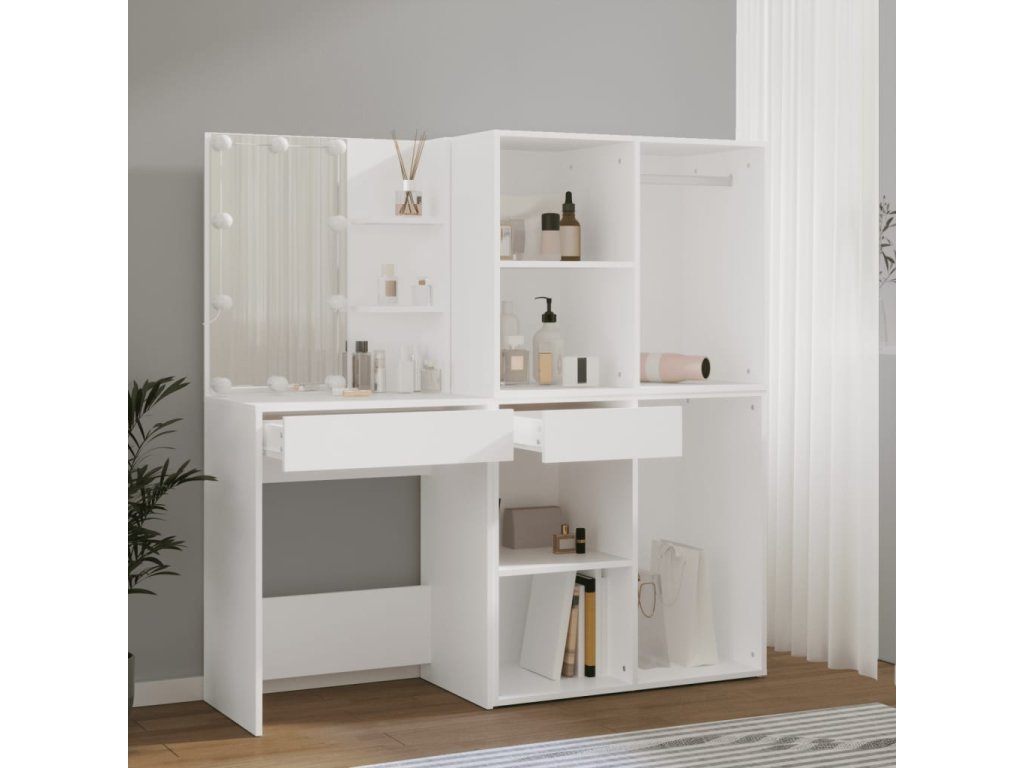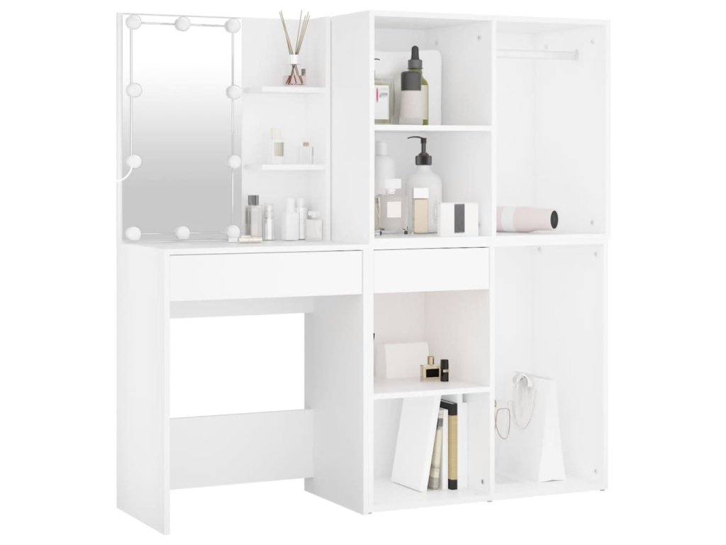- LED světla: Kosmetický stolek se skříňkami má LED žárovky s USB, u kterých lze snadno přepínat režimy z teplé do studené bílé. Integrované LED žárovky kolem zrcadla zvýrazní i vaši krásu.