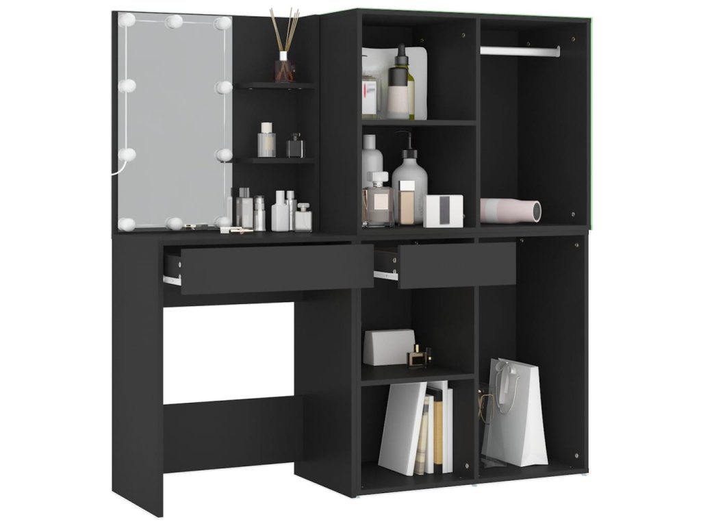 LED toaletní stolek se skříňkami černý kompozitní dřevo 3082027