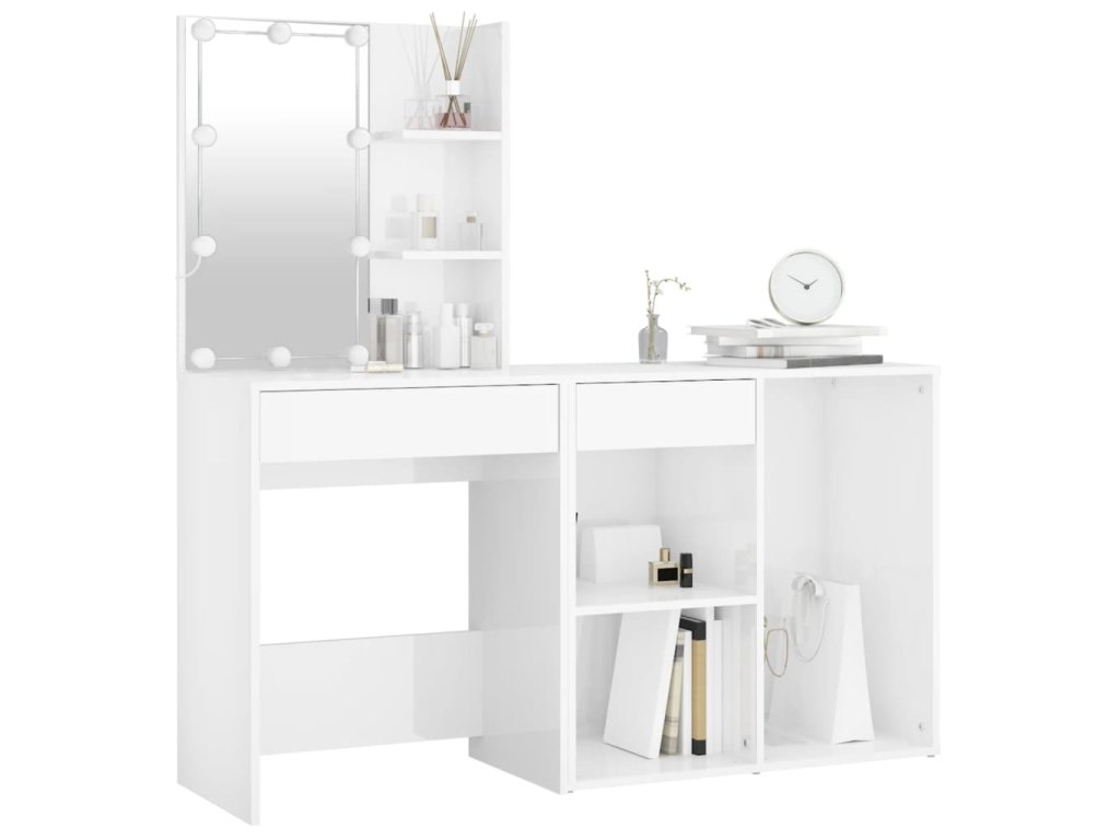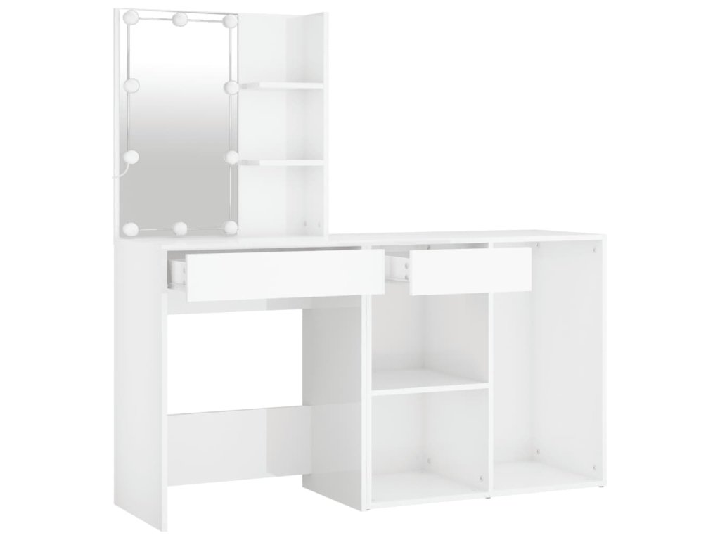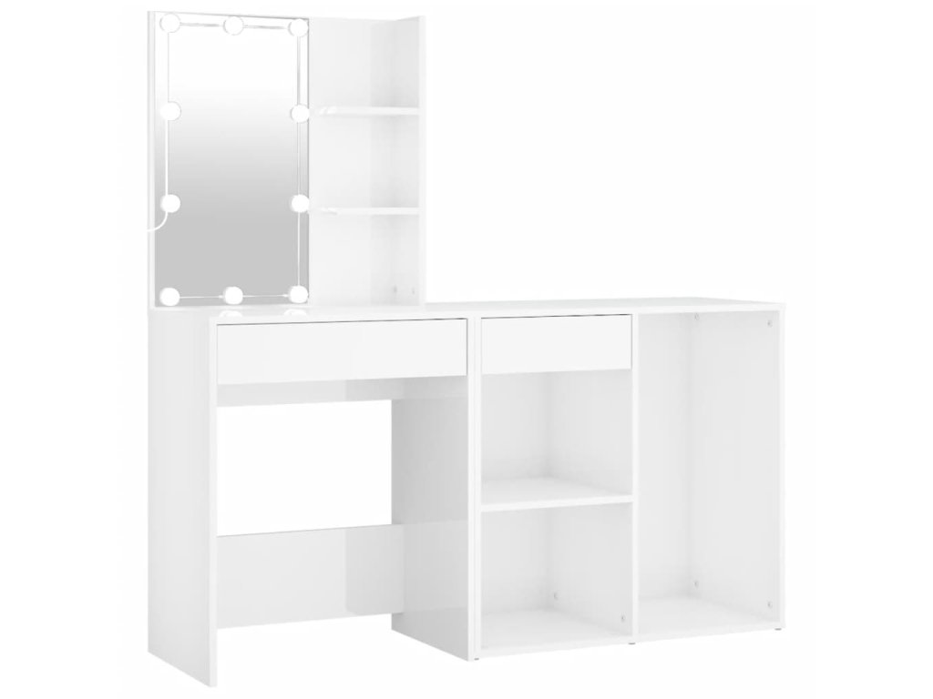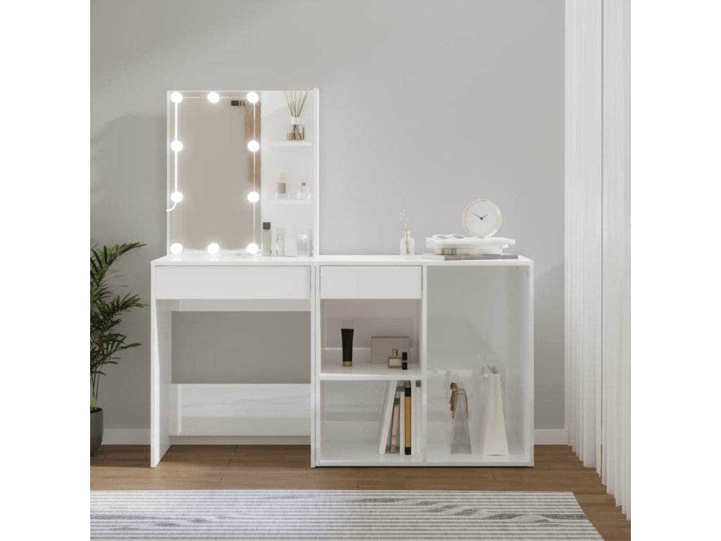 LED toaletní stolek se skříňkou lesklý bílý kompozitní dřevo 3082023