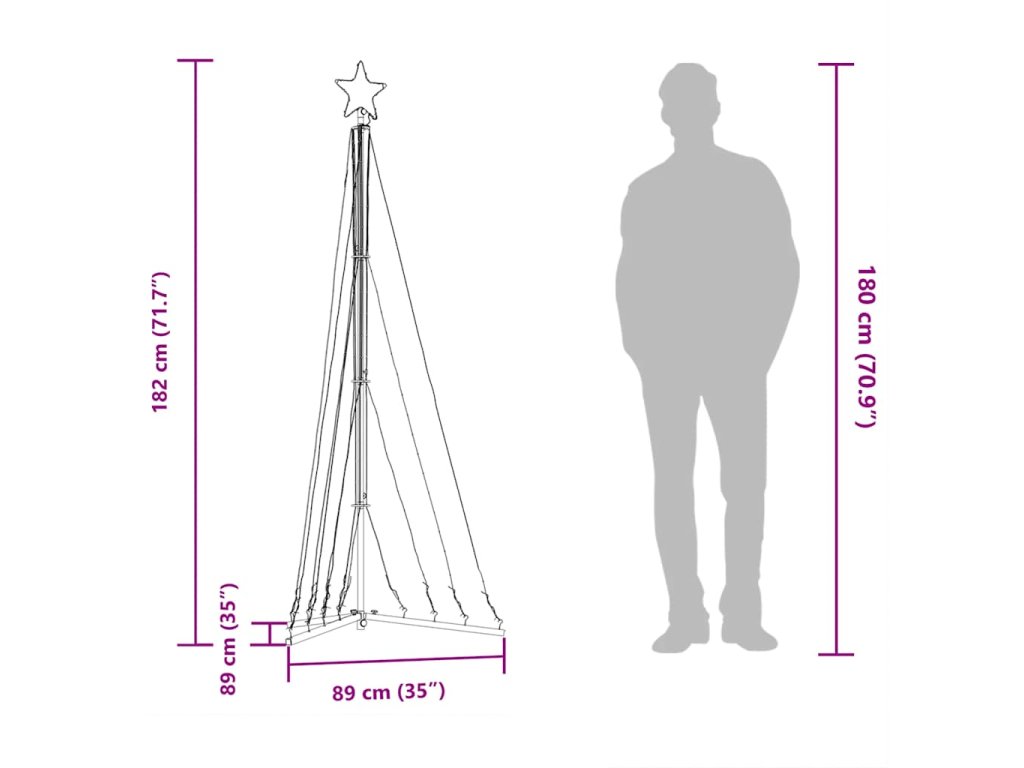 - Snadné sestavení a skladování: Kompletní montážní sada obsahuje odnímatelný stojan, spojovací tyče, háčky a zemní kolíky, které umožňují snadné a rychlé sestavení tohoto LED vánočního stromku. Je skládací, což vám usnadní jeho skladování a umožní opakované použití, přičemž zabírá minimum místa.