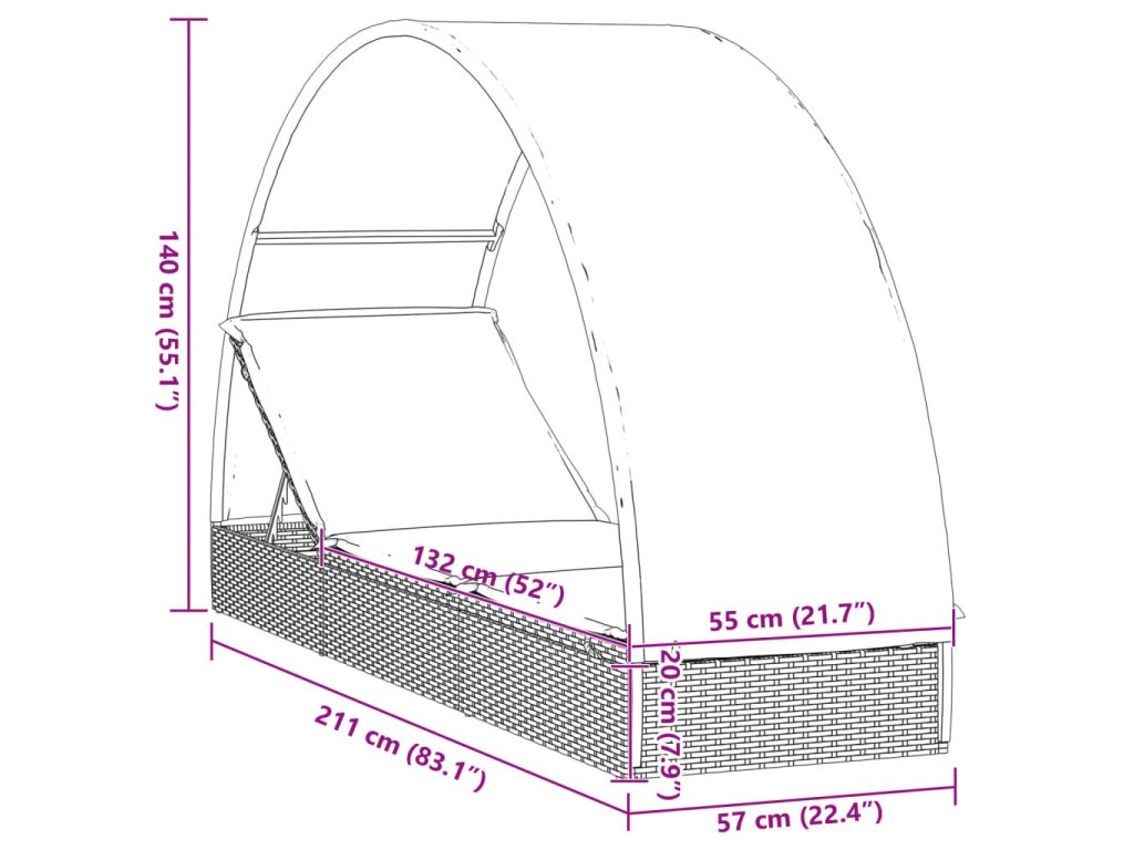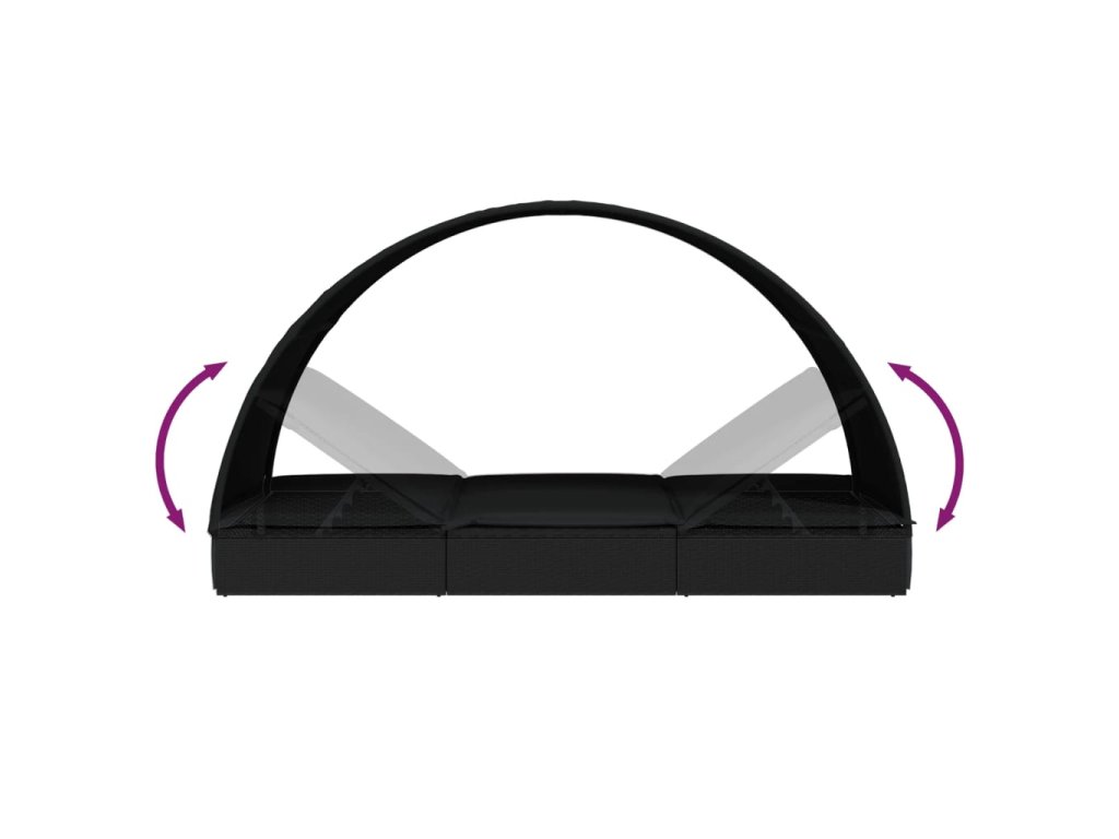 Lehátko s kulatou střechou černé 211 x 57 x 140 cm polyratan 319644
