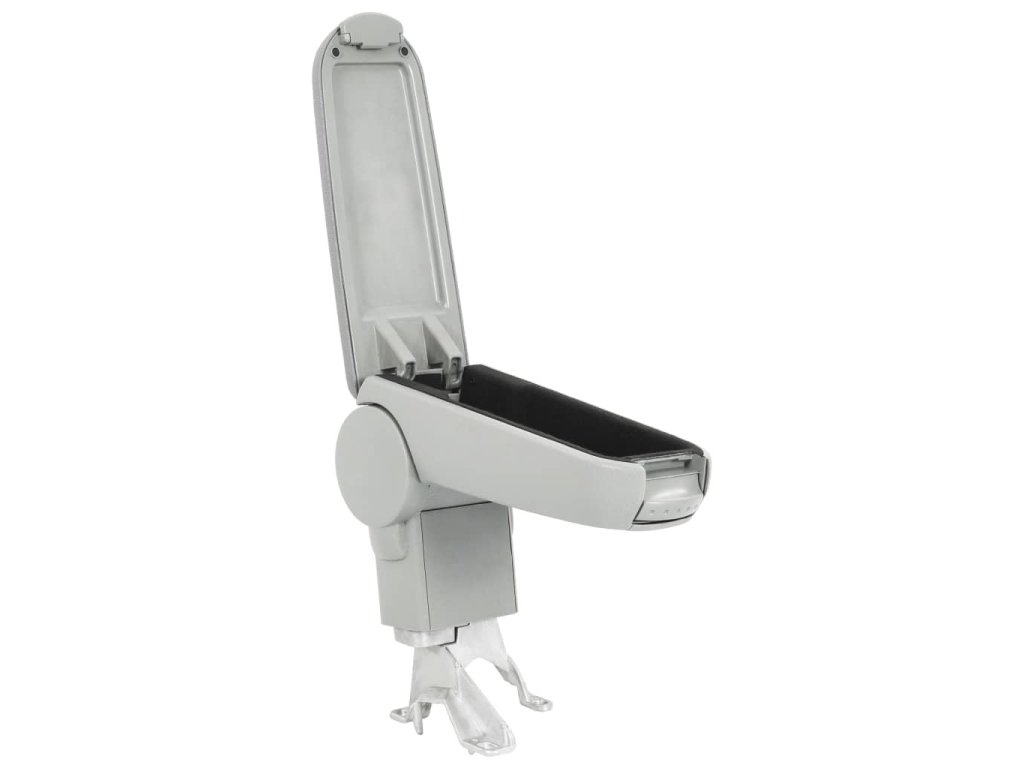 Loketní opěrka sestává z odolné plastové základny a úložného prostoru s polstrovaným víkem, o které se můžete pohodlné opřít.