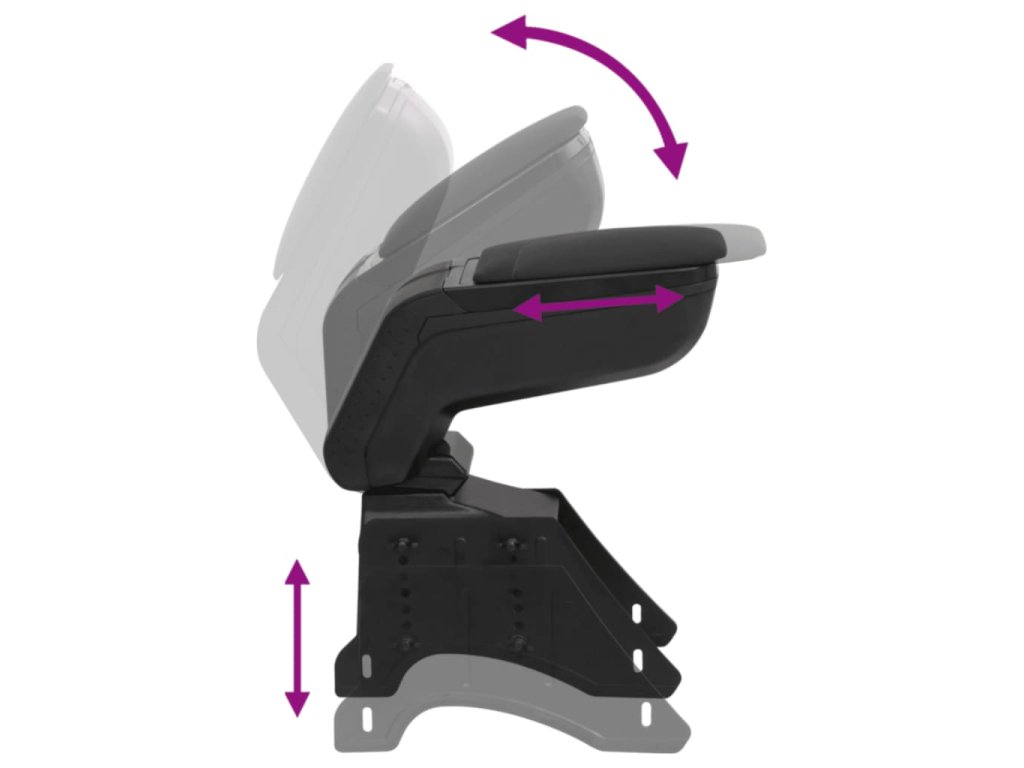 - Snadná instalace: Středová konzola se jednoduše instaluje a správně vyplňuje prostor mezi konzolou a sedadlem, který vznikl díky držáku loketní opěrky. A také se snadno nastavuje, aniž by to mělo vliv na přizpůsobení sedadla.