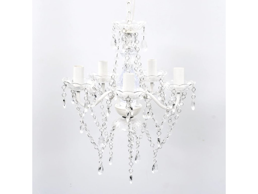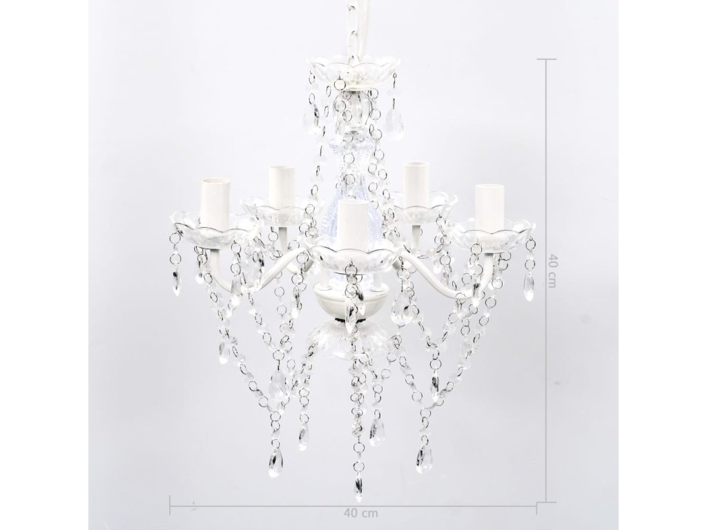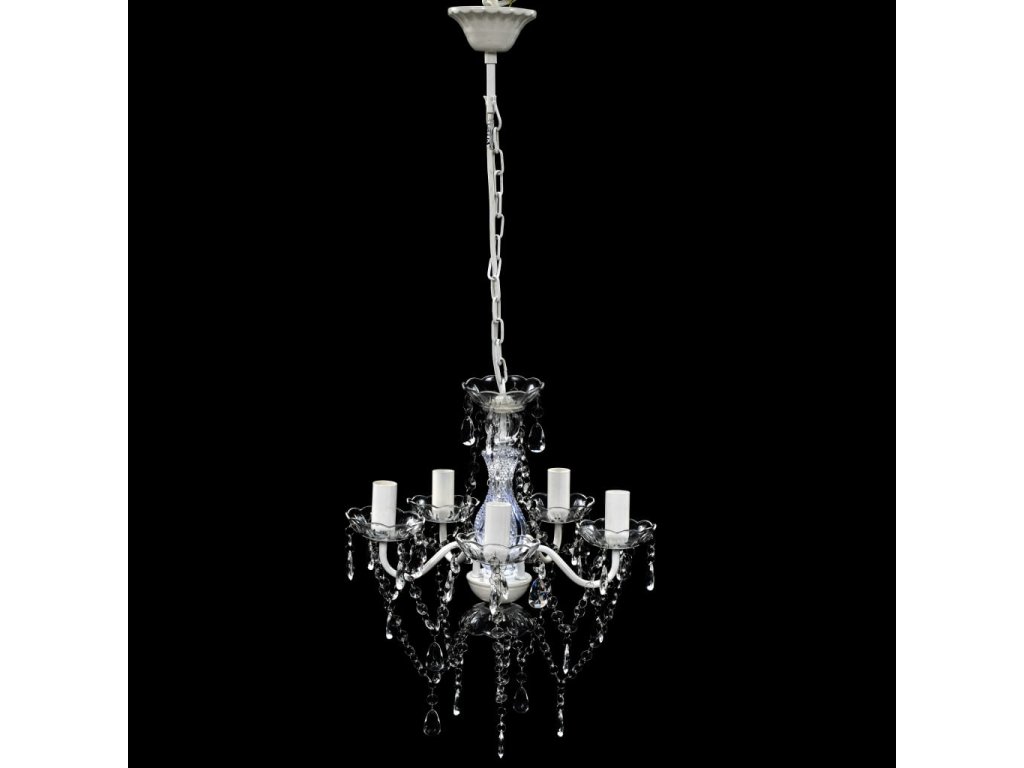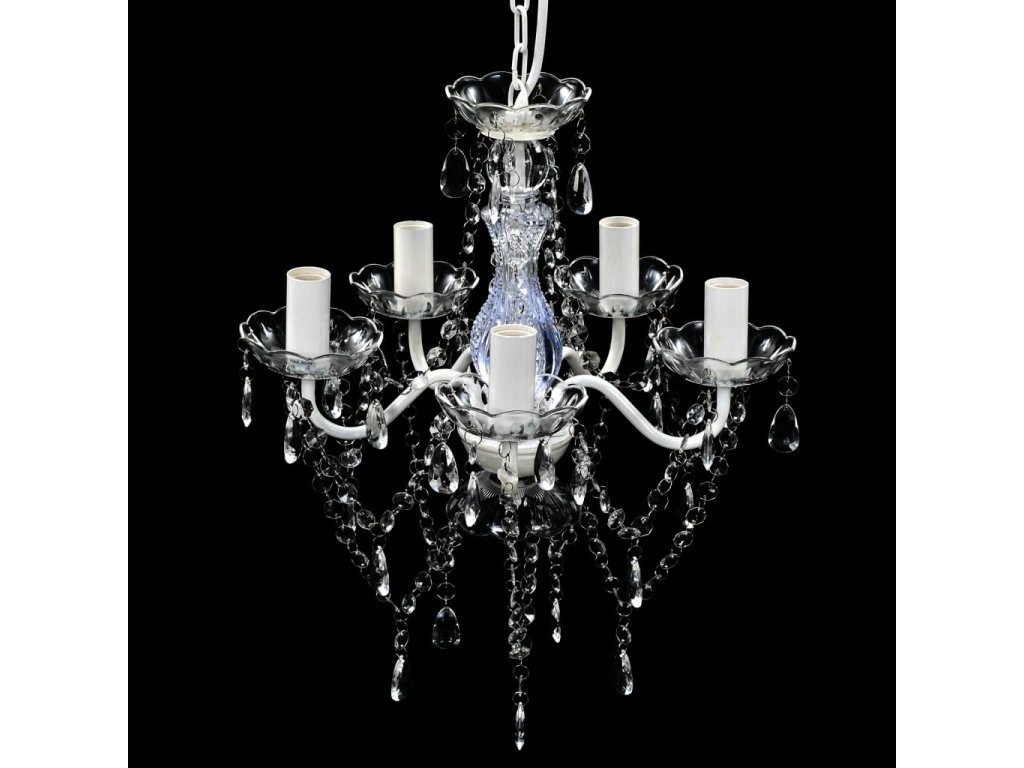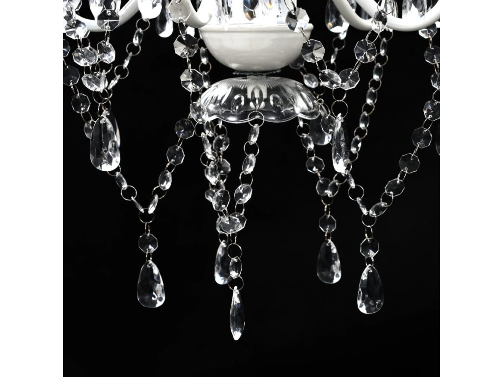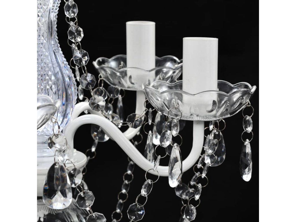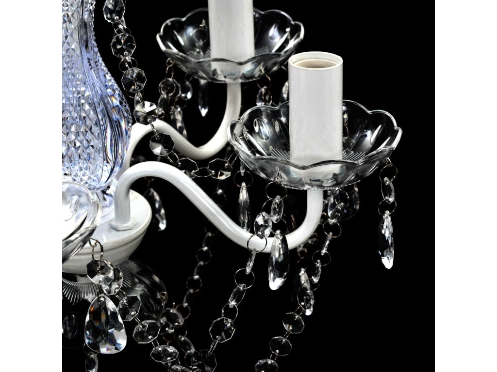 Tento lustr má zručně zhotovený středový sloupek z křišťálového skla se zakřivenými akrylovými rameny, svícny a korálky ve tvaru kapek. Můžete použít jak žárovky, tak LED diody.