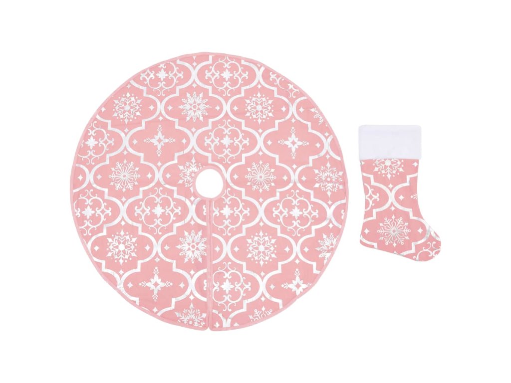 Luxusní podložka pod vánoční stromek s punčochou růžová 90 cm 330284