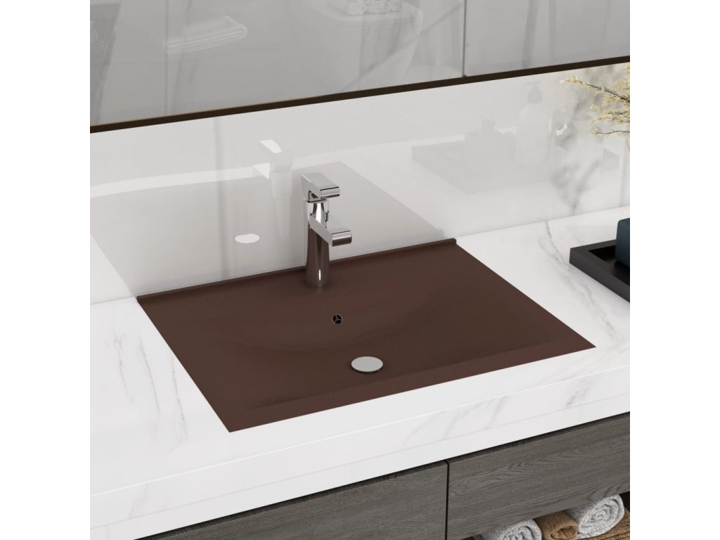 Luxusní umyvadlo otvor na baterii tmavě hnědé 60x46 cm keramika 147028