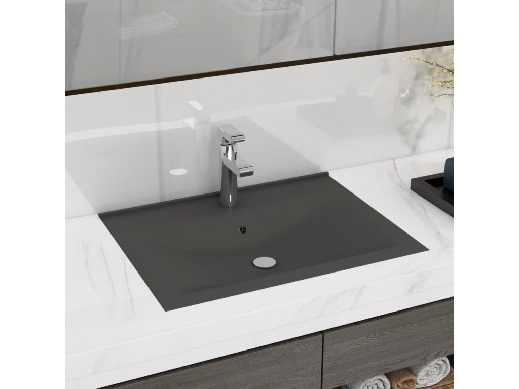 Luxusní umyvadlo otvor na baterii tmavě šedé 60x46 cm keramika 147027