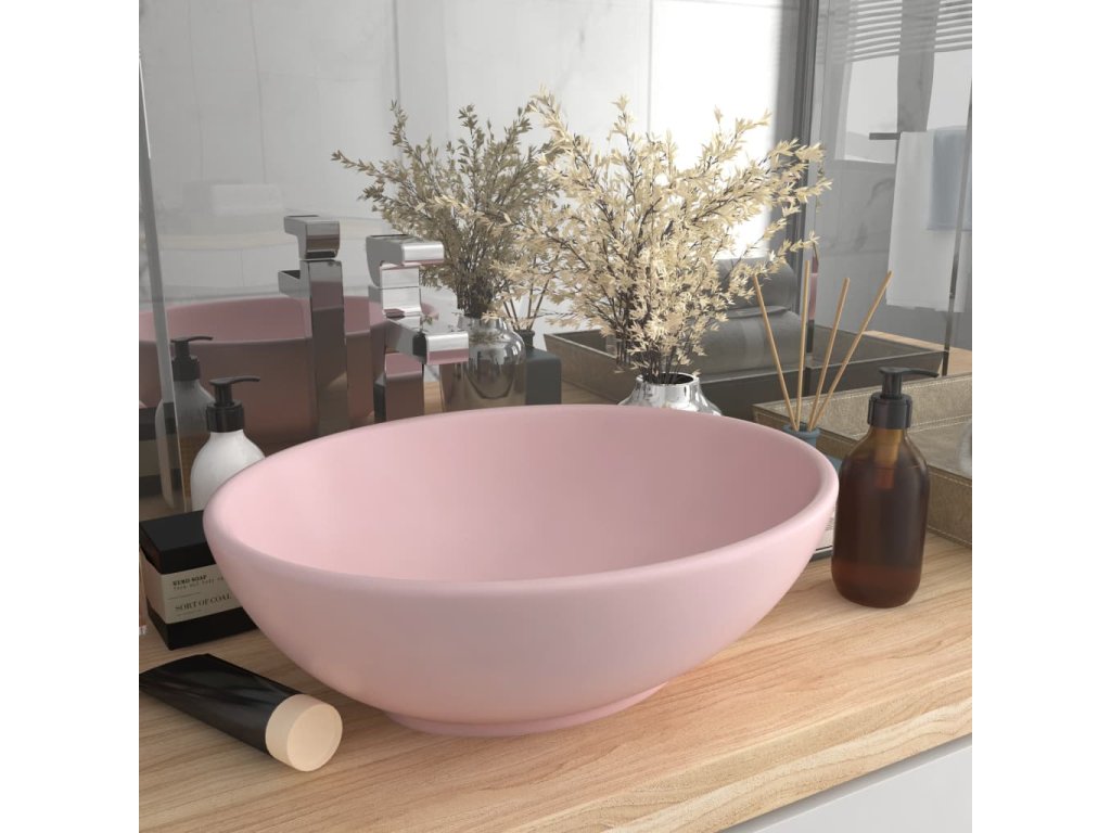 Luxusní umyvadlo oválného tvaru matně růžové 40x33 cm keramika 146922
