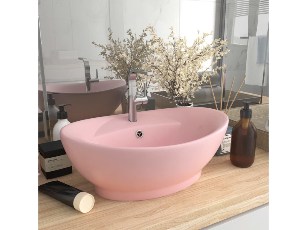 Luxusní umyvadlo přepad oválné matné růžové 58,5x39 cm keramika 146933