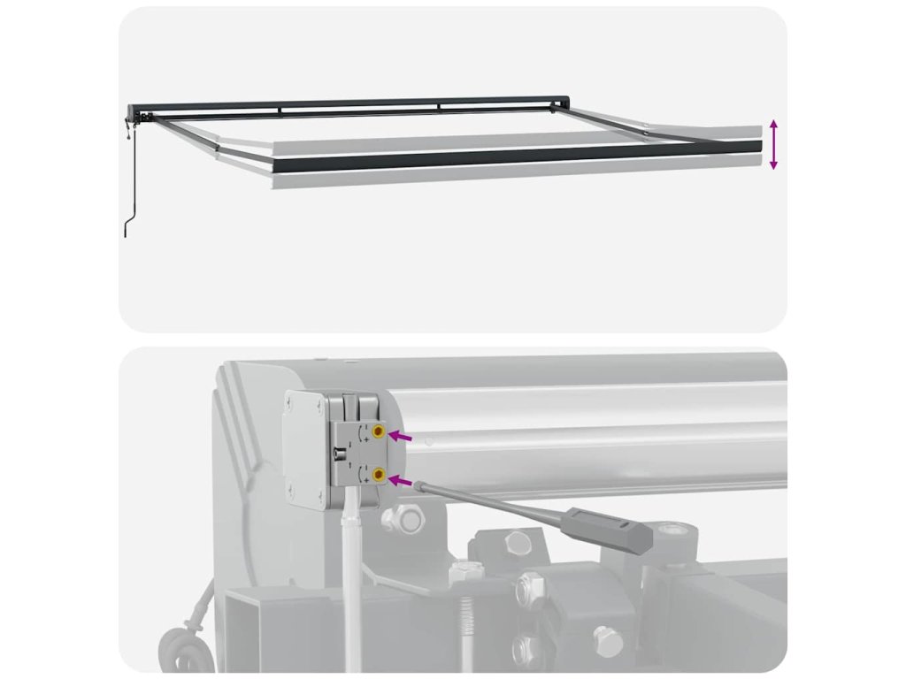 - Detail ot m aterialu: Markýza je vyrobená z kvalitního kovu pro dlouhou životnost a skvělé výkony, spojuje sílu s stylem. Kovový rám vydrží různé počasí, takže ti dlouho poslouží. Její UV-odolné vlastnosti chrání před slunečním poškozením a zajistí, že bude dlouho vypadat skvěle.