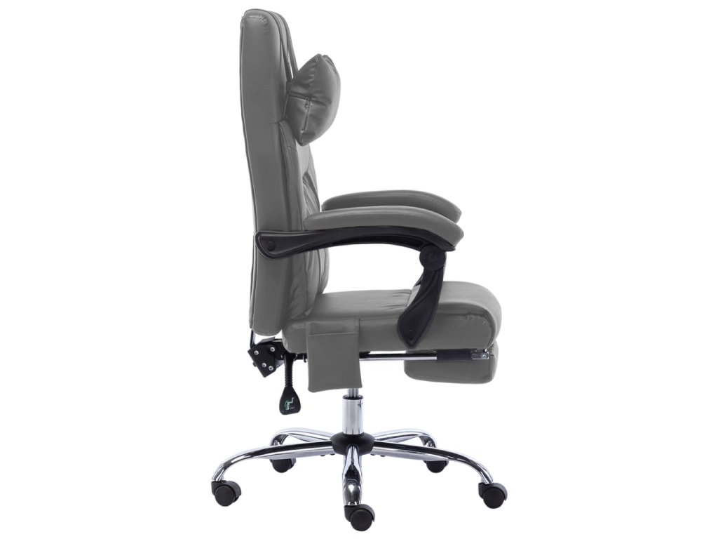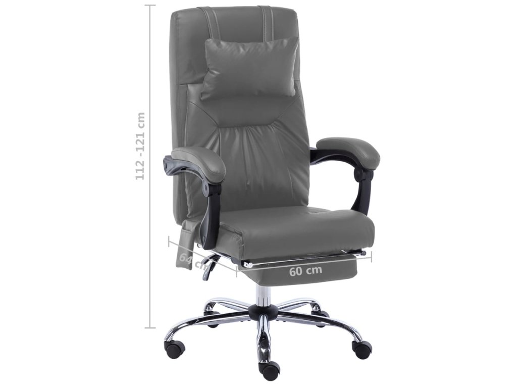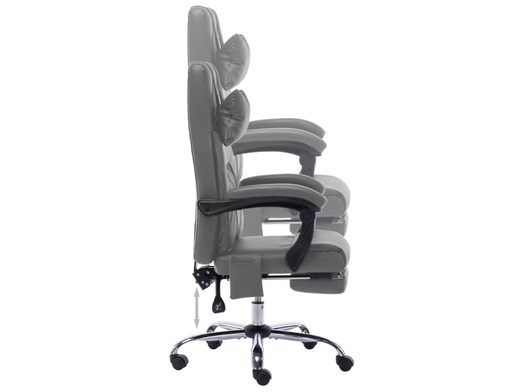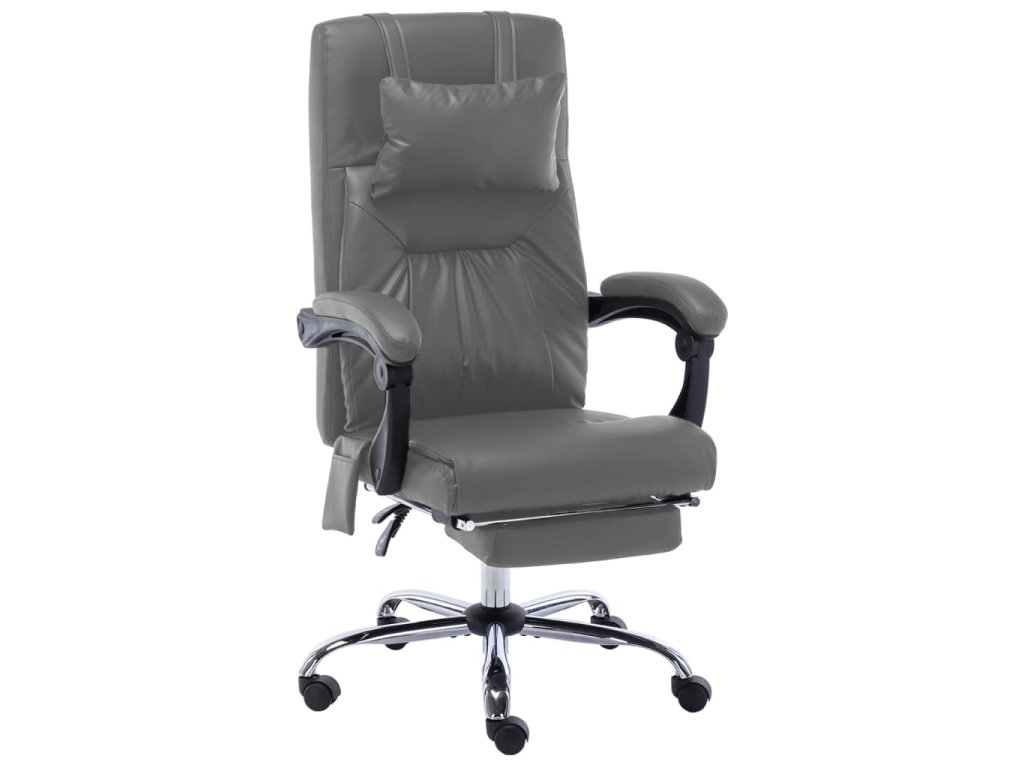 Židle má vysoké opěradlo a šíjový polštář s jednobodovou masáží, zaoblené područky, podnožku a hustě polstrovaný sedák, aby se vám na ní dobře sedělo i během dlouhých pracovních dnů. Její výšku lze nastavit, takže ji bez problémů přizpůsobíte výšce psacího stolu, a dosáhnete tak maximálního pohodlí i zdravé pozice páteře. Polohovací křeslo je vybavené nylonovými pojezdovými kolečky pro snadný pohyb. Navíc se dá sklopit do úhlu 95° až 135°, což vám umožní najít si tu nejpříjemnější polohu k odpočinku.
