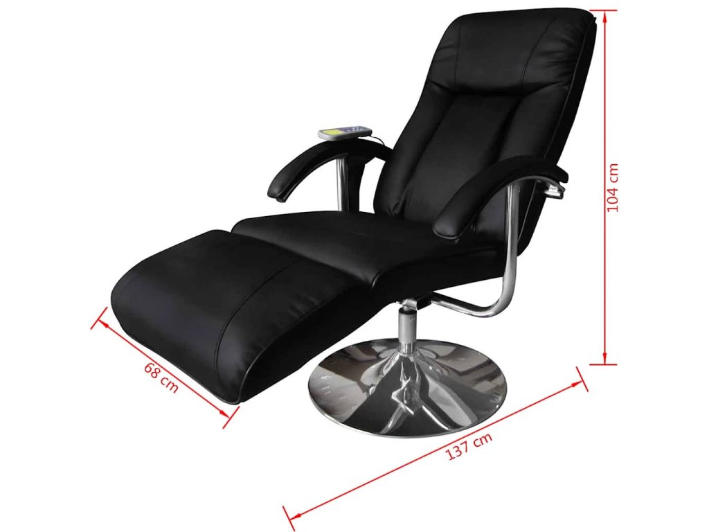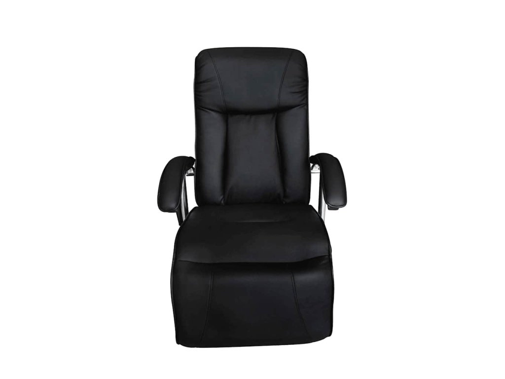 Křeslo je polstrované a čalouněné černou umělou kůží, která se snadno čistí. Opěradlo a podnožka lze synchronně nastavovat.
