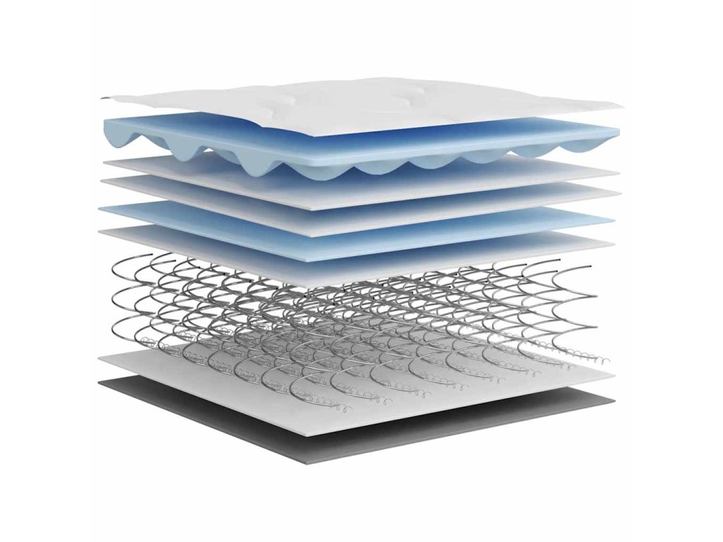 - Zvýšený komfort: Pružinová matrace má více vrstev, včetně pěnové, izolační a pružinové vrstvy. Tato kombinace zajišťuje mírnou až střední tvrdost a komfort pro všechny polohy při spánku. Matrace navíc účinně tlumí hluk a vibrace způsobené převalováním a otáčením, čímž zajišťuje klidný a nerušený spánek.