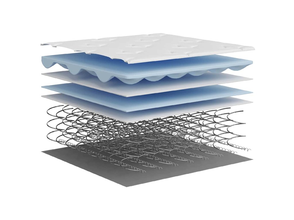 - Zvýšený komfort: Pružinová matrace má více vrstev, včetně pěnové, izolační a pružinové vrstvy. Tato kombinace zajišťuje mírnou až střední tvrdost a komfort pro všechny polohy při spánku. Matrace navíc účinně tlumí hluk a vibrace způsobené převalováním a otáčením, čímž zajišťuje klidný a nerušený spánek.