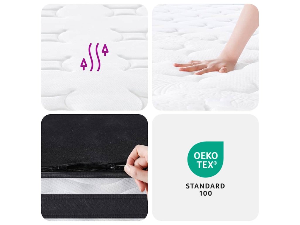 - Snadná údržba: Pružinová pěnová matrace je ve spodní části vybavena dlouhým zipem, který umožňuje snadné sejmutí potahu pro vyprání.