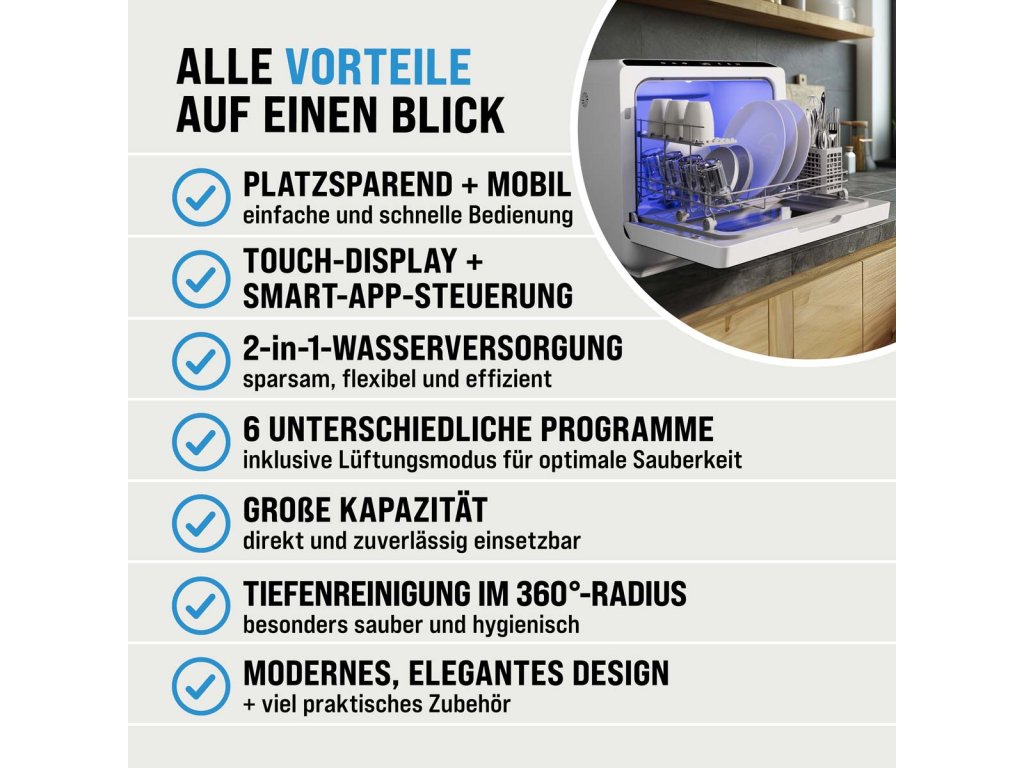 Mini myčka nádobí MONZANA® s WiFi a 6 režimy