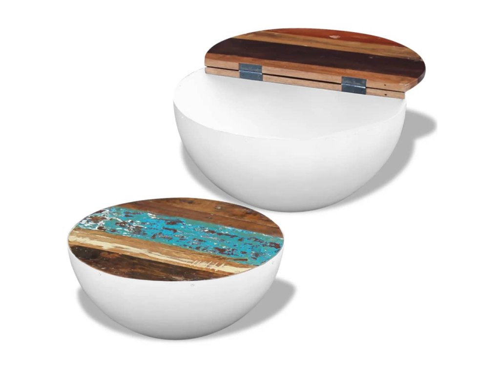 Každý kus má stolní desku vyrobenou z recyklovaného dřeva, které je pevné, odolné a krásné a má typické vlastnosti různých druhů dřeva, jako je teak, mangovníkové dřevo, akácie, tvrdé dřevo, recyklované dřevo atd. Každý kus je jedinečný a lehce se liší od všech ostatních. Známky používání a viditelná struktura dřeva dodávají každému kusu nábytku jeho vlastní historii a jedinečný vzhled.