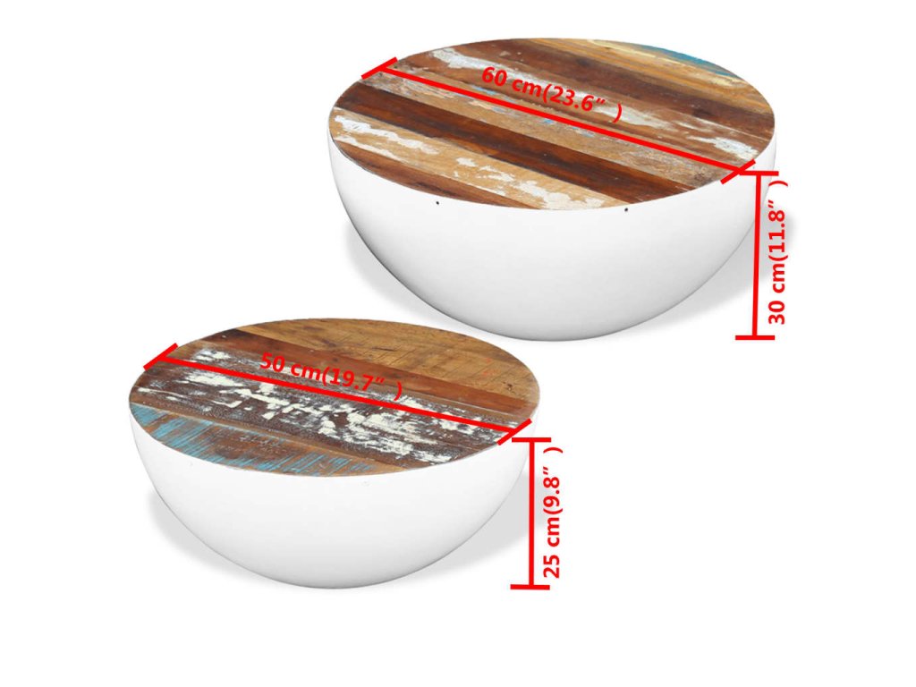 Důležité upozornění: Barva se může lišit kus od kusu, díky čemuž je každý z našich miskovitých konferenčních stolků jedinečný. Balení obsahuje 2 konferenční stolky. Výběr kusů k dodání je náhodný.