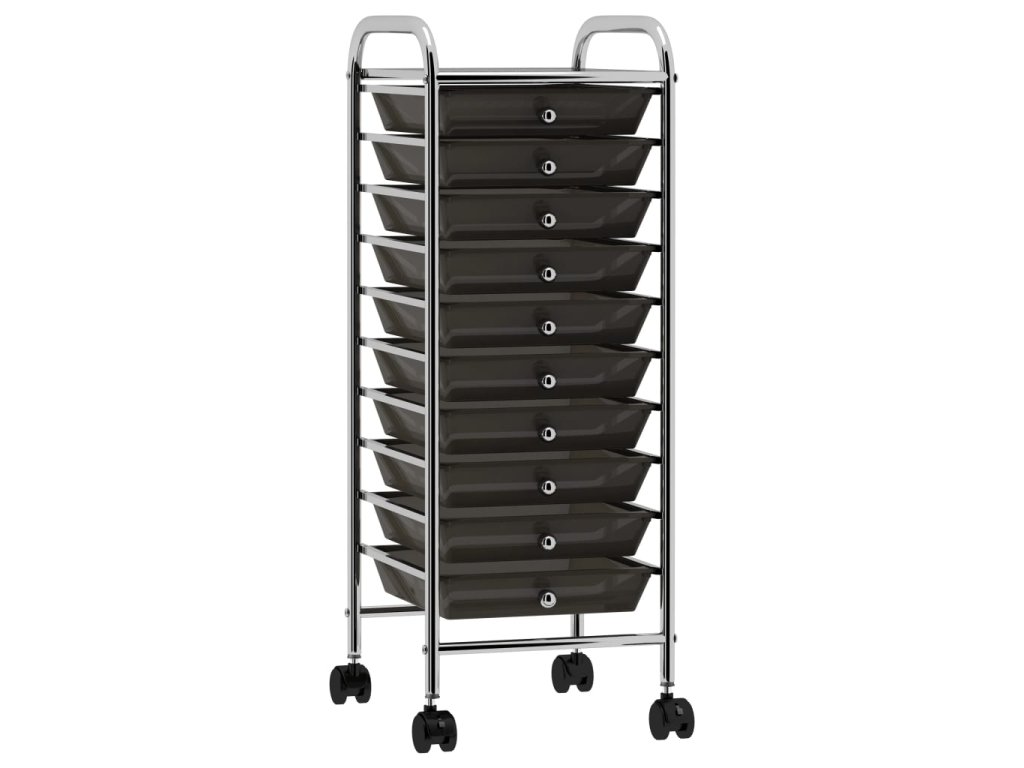 Mobilní úložný vozík s 10 zásuvkami černý plastový 320402