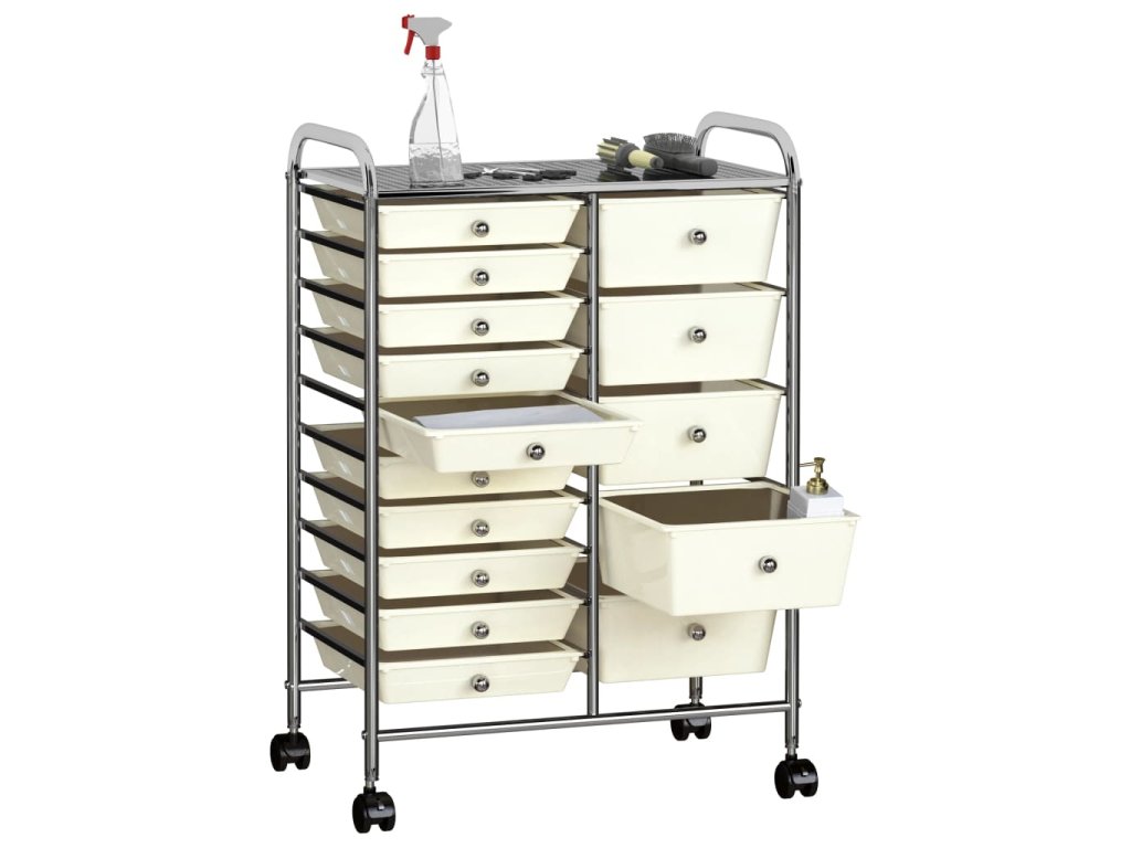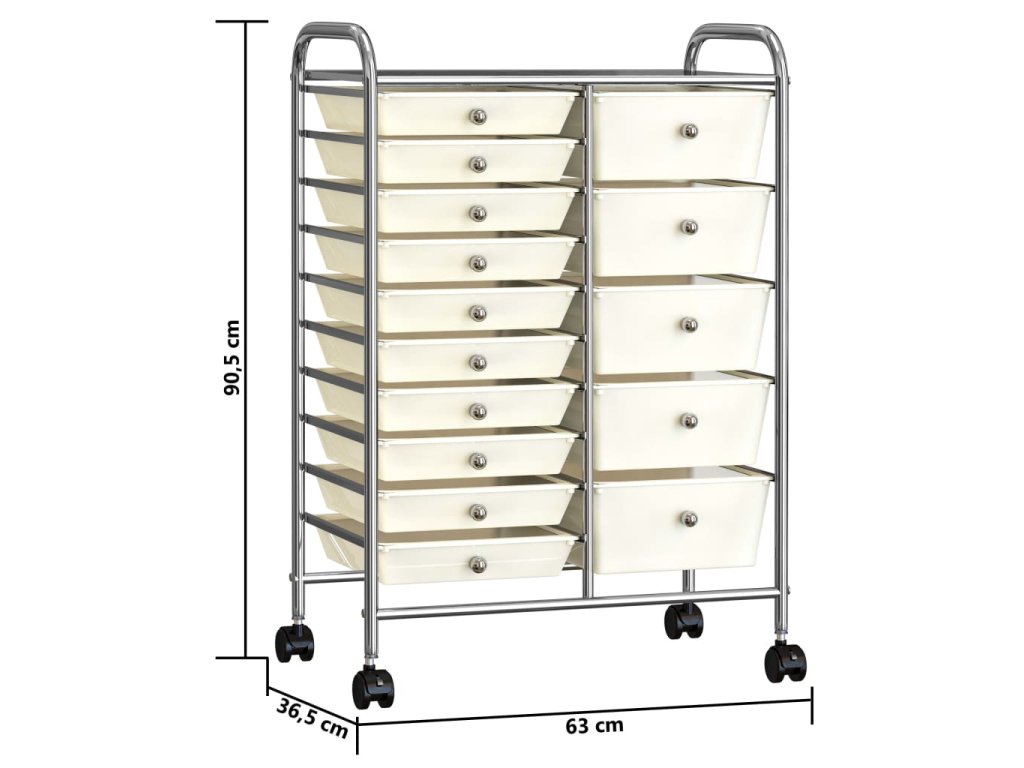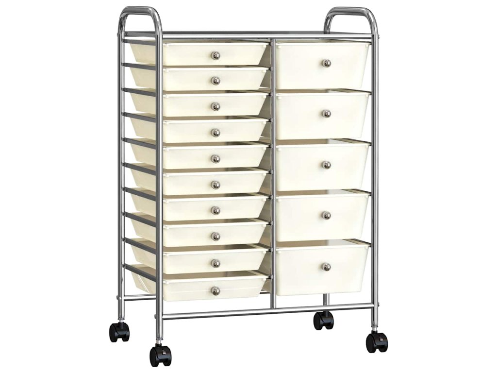 Mobilní úložný vozík s 15 zásuvkami bílý plastový 320408