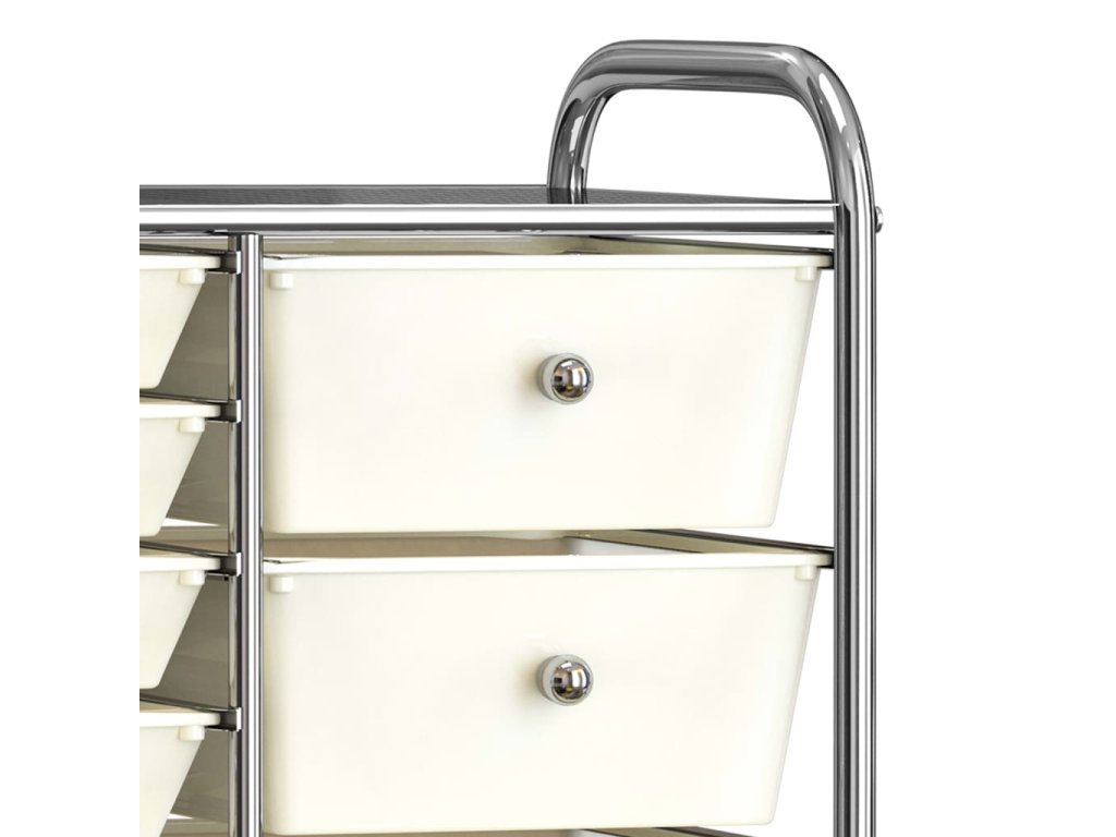 Vozík se zásuvkami s prostorově úsporným a praktickým stylem vám nabízí spoustu úložného prostoru pro přehledné ukládání vašich kancelářských nebo kosmetických potřeb na dosah ruky.