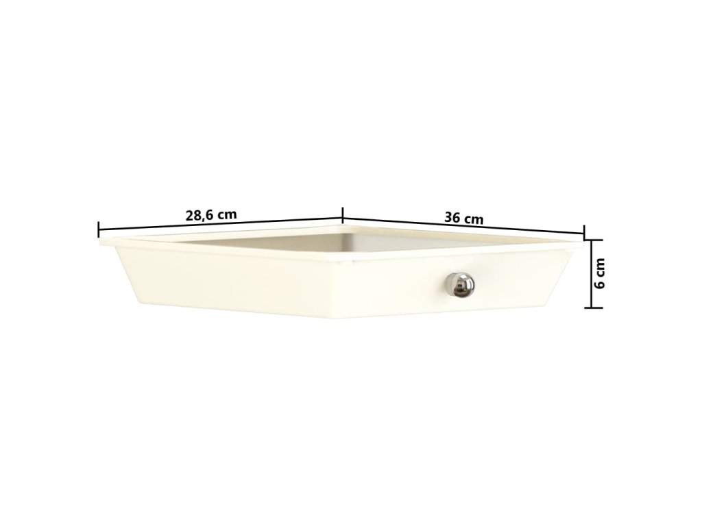 - Velikost malé zásuvky: 28,6 x 36 x 6 cm (D x Š x V)