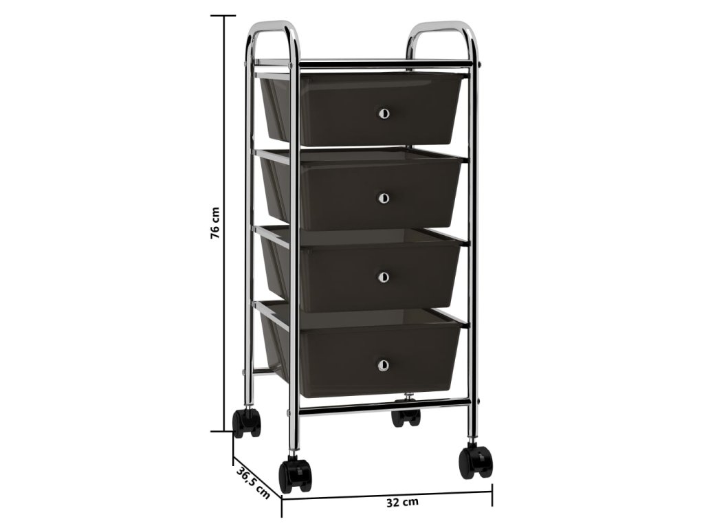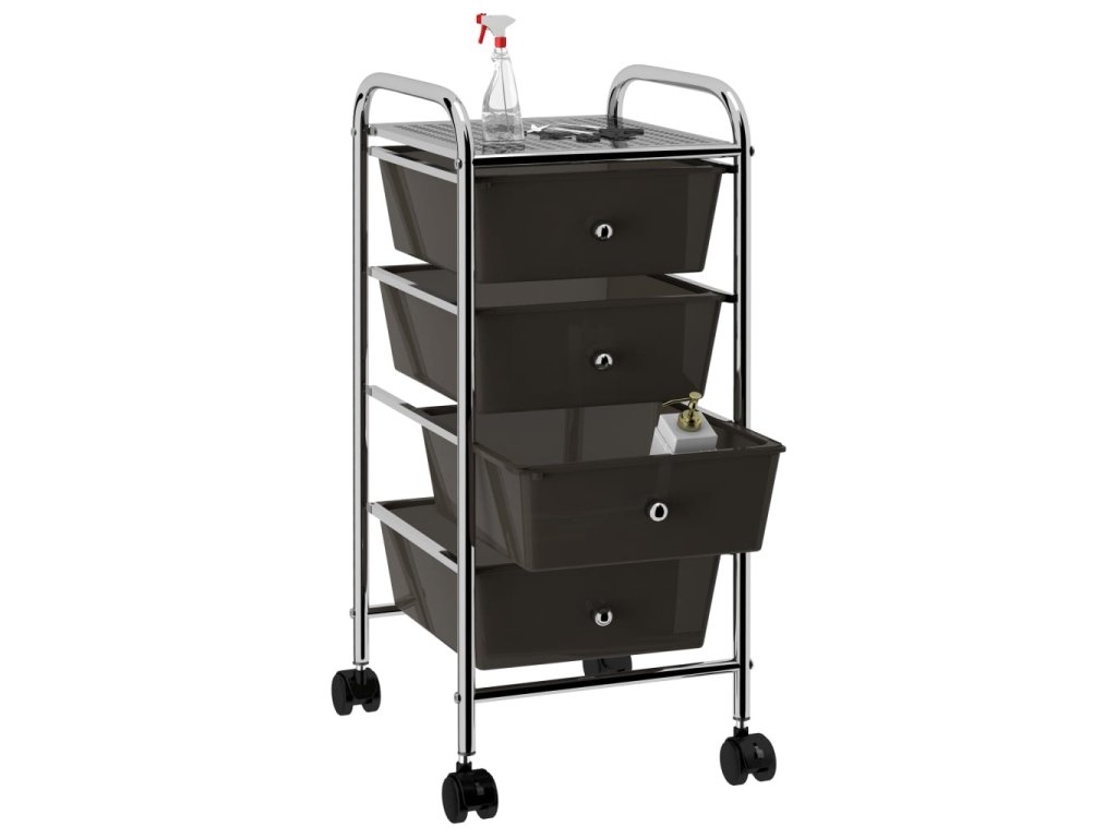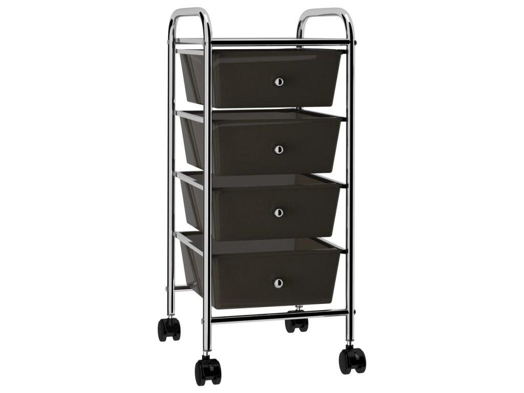 Mobilní úložný vozík se 4 zásuvkami černý plastový 320398