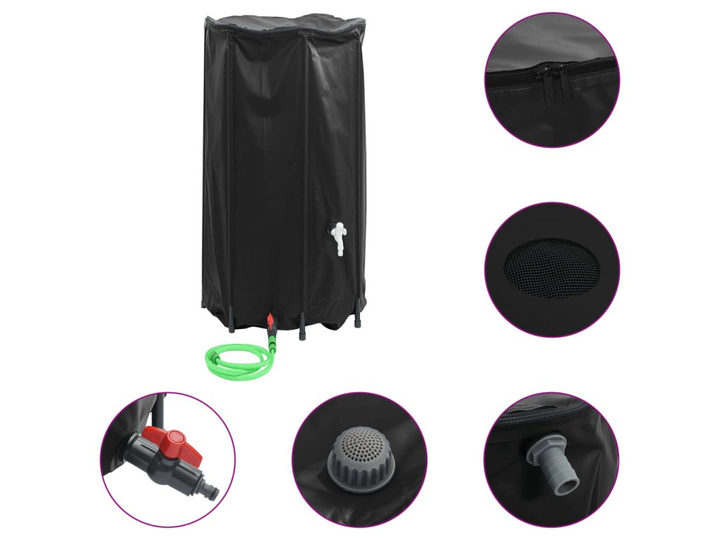 - Snadné použití: Zahradní nádoba na vodu je vybavena kohoutkem, výpustným ventilem z ABS a hadicemi na vodu, takže její použití je velmi praktické. Tento kohoutek s regulací průtoku má navíc celistvou bezešvou konstrukci, takže se nemusíte obávat netěsností.