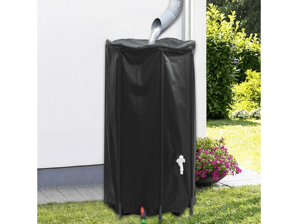 Skládací nádrž na dešťovou vodu bez námahy zachycuje vodu z dešťových srážek a ukládá ji pro pozdější použití.